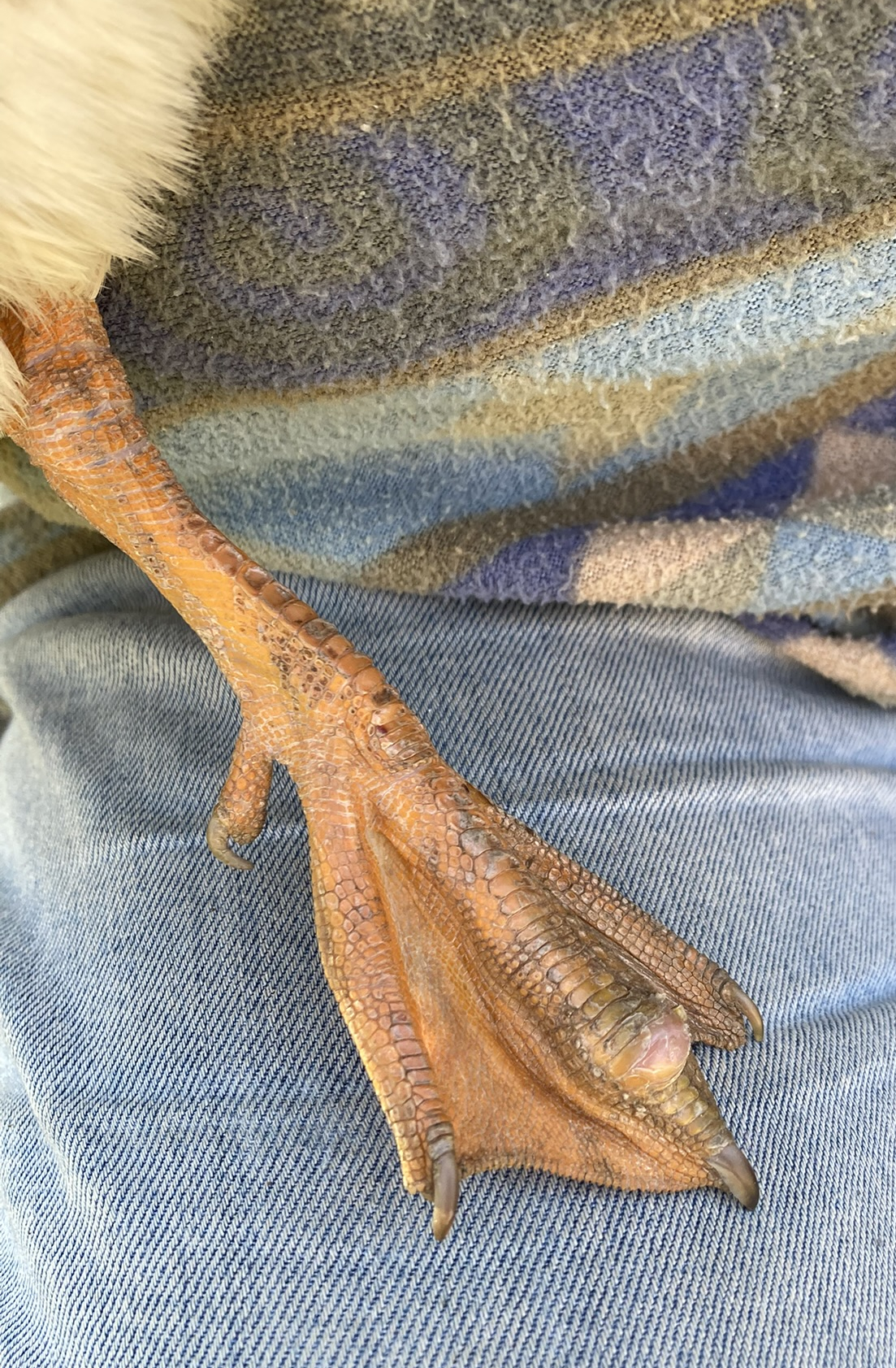 Začala nám kulhat kachna indického běžce, na radu veter.jsme 5 dní aplikovali lék s loxikamem, kachna začala chodit trochu lépe ale po dalších 2 dnech posedává, ostatním nestačí. Na horní straně běháku má "otok" (kulovitý útvar) je teď trochu větší než na fotce. Prosím o diagnózu.