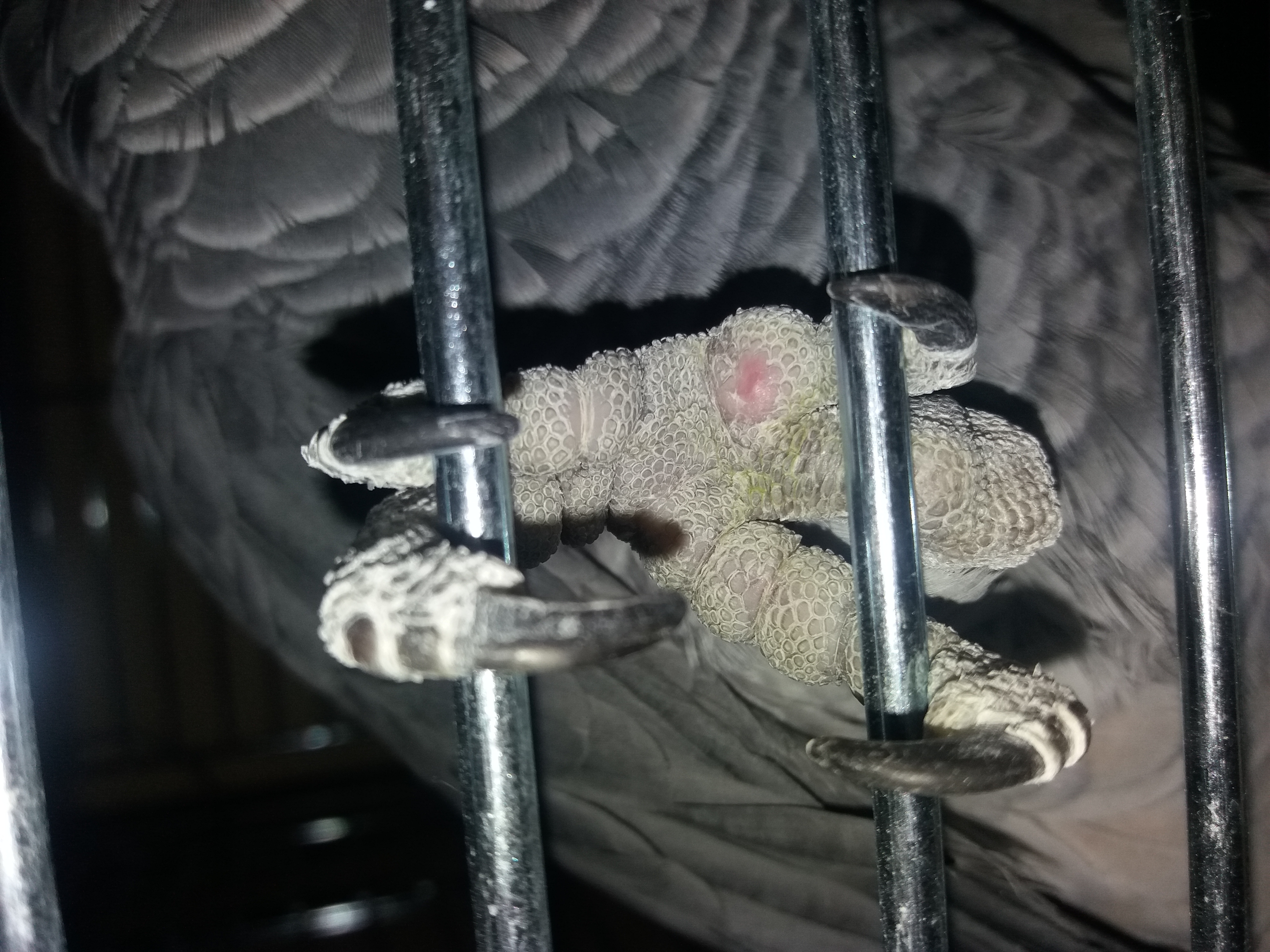 Dobrý den, mohlo by se jednat o otlak. Ten bývá častý v ptačí medicíně, především pak u těžších ptáků. Teď záleží na tom, zda s tím pták má nějaké problémy při šplhání, sezení atd., poté by se měla udělat revize, případně vyčistit dutinu, která může být vyplněná hnisem, místo krýt a to s lokálním antibiotikem. Hezký den.