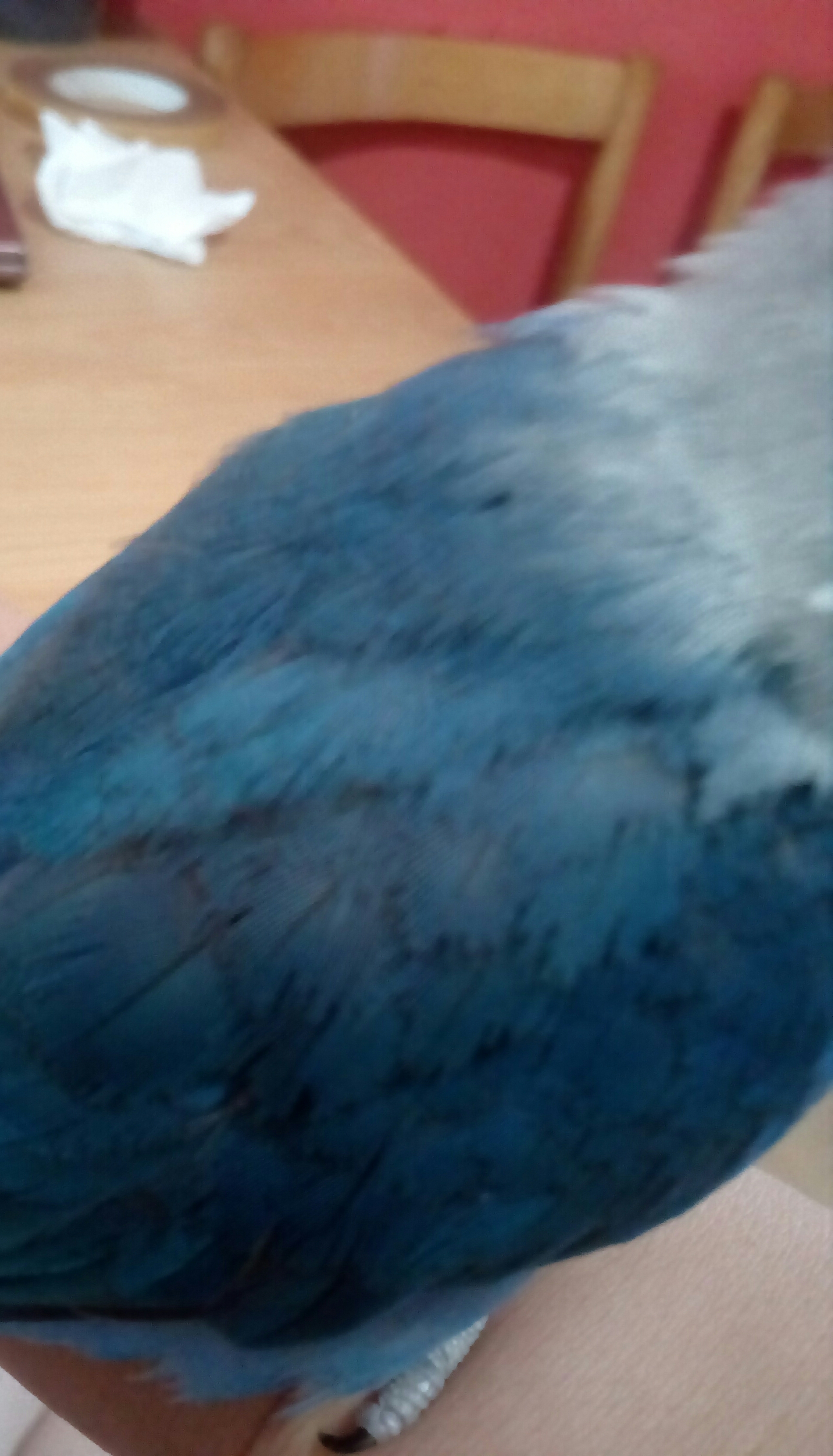 Dobrý den, Váš dotaz mi byl přesunut. Z fotografie peří vypadá, jako kdyby si ho sama ozobávala. Možných příčin může být několik, např. metabolické onemocnění, nedostatek minerálních látek, porucha chování, bolestivost, případně parazité. Pro zjištění příčiny by bylo nejvhodnější navštívit veterinárního lékaře, který běžně ošetřuje exotické ptactvo. Z fotografie lze těžko posoudit. Hezký den. MVDr. Sandra Coufalová DoTh.