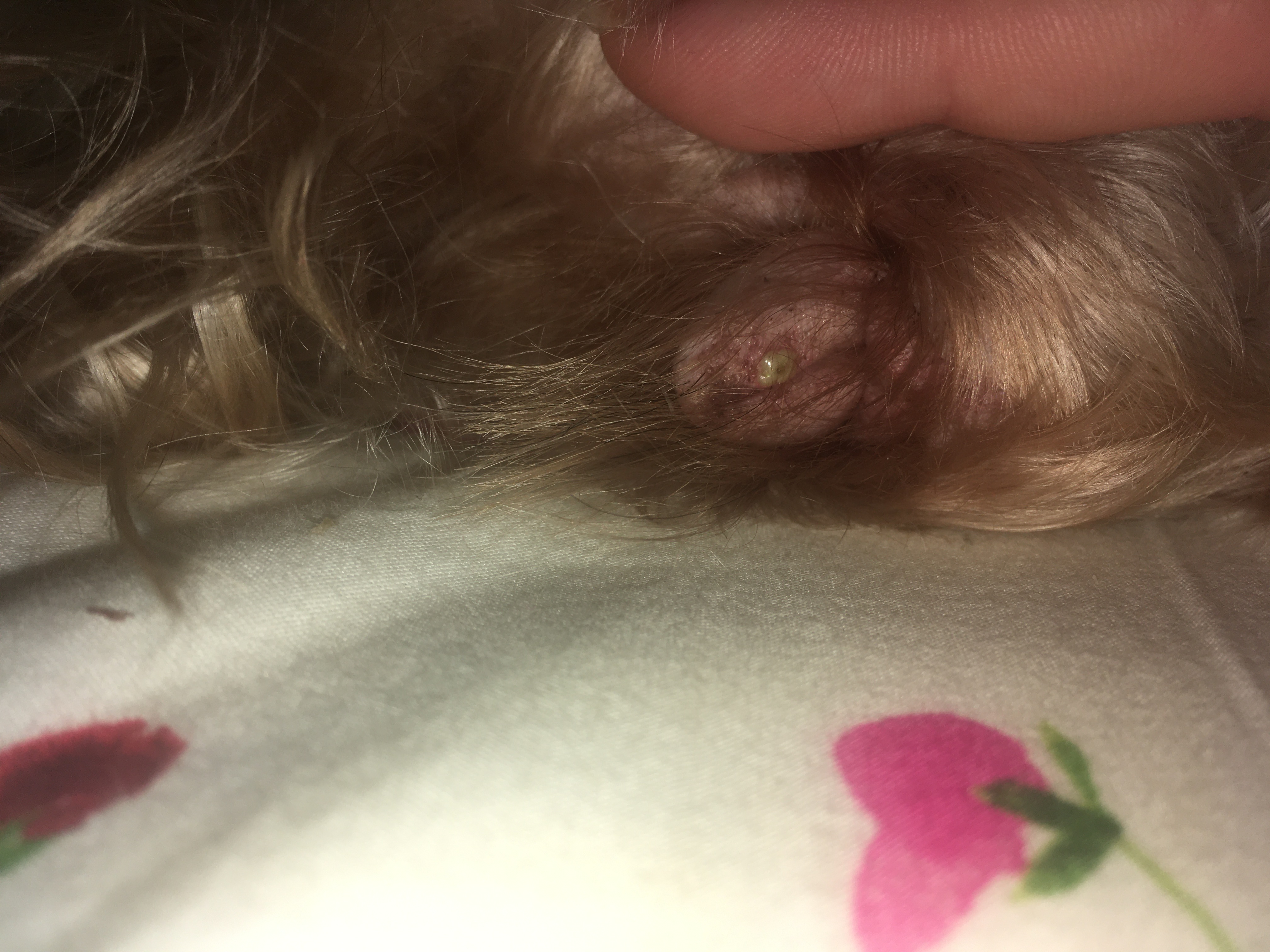 Dobrý den, měla bych dotaz týkající se úkazu na přiložené fotografii. Náhodou jsem na přirození naší fenky (13 let) objevila tento vystouplý bíložlutý flek s černou tečkou uprostřed. Mohlo by se jednat o psí akné nebo bych měla tento problém konzultovat s naším veterinářem? Pokud se jedná o akné, můžu jej sama odstranit? Děkuji za odpověď Nováková