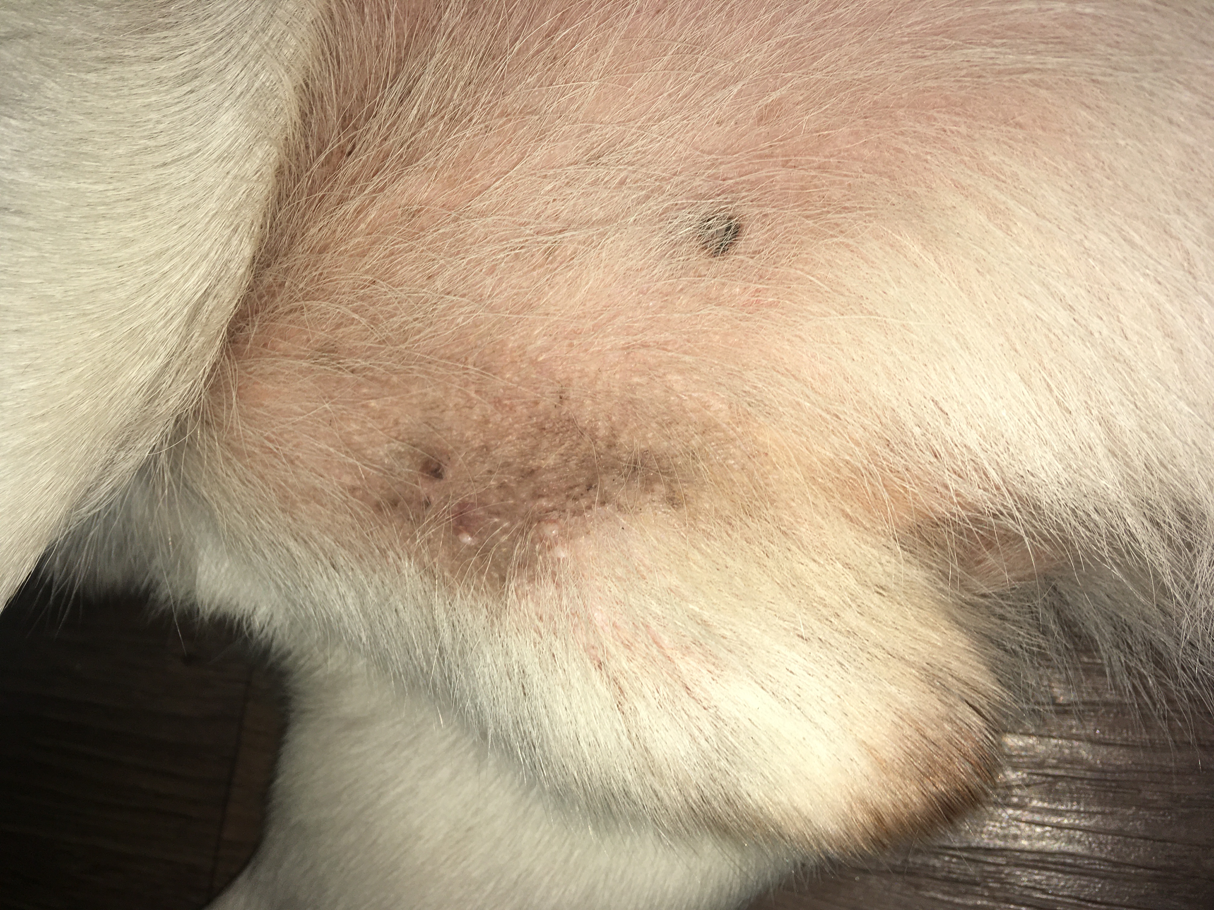 Dobrý den, dnes jsem svému psovi(labrador 7 let) objevila na břiše takové bílé pupínky. Jsou spíše blíže k penisu a na něm jich je tedy víc. Jsou jen z jedné strany a na pohmat to vypadá i na nějakou bouli. Pes si to nekouše, nelíže a na pohmat mu to nějak nevadí. Nevíte co by to mohlo být? Je nutné hnát hned k veterináři? Děkuji.