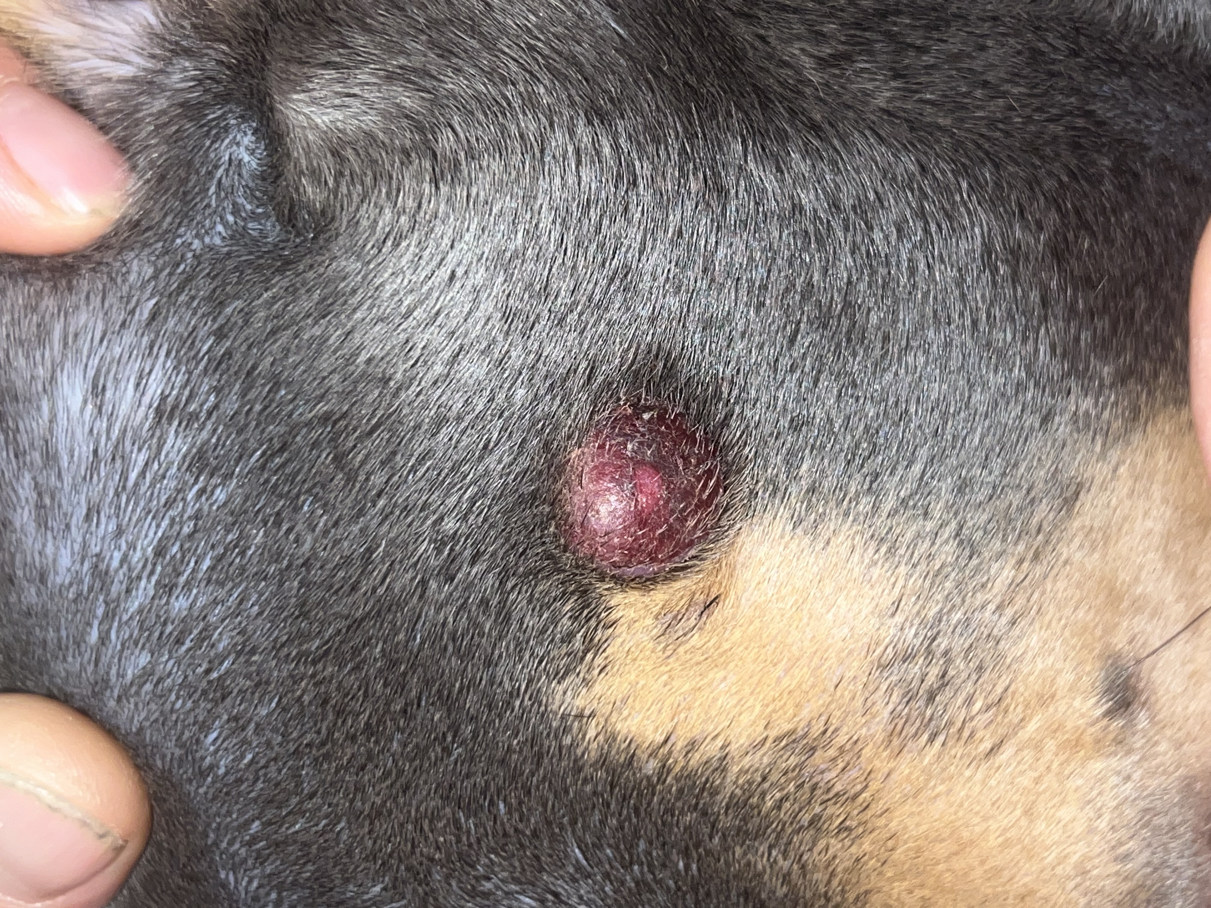 Dobrý den, je to asi dva týdny zpět, co se nám pejskovi vytvořila na tváři taková bulka. Veterinarka nám dala nějaké kapicky, ale připadá nám, že se boule zvětšuje a nijak se to nezlepsuje. Bohužel si pejsek občas tvar rozškrábne a teče z toho krev.
