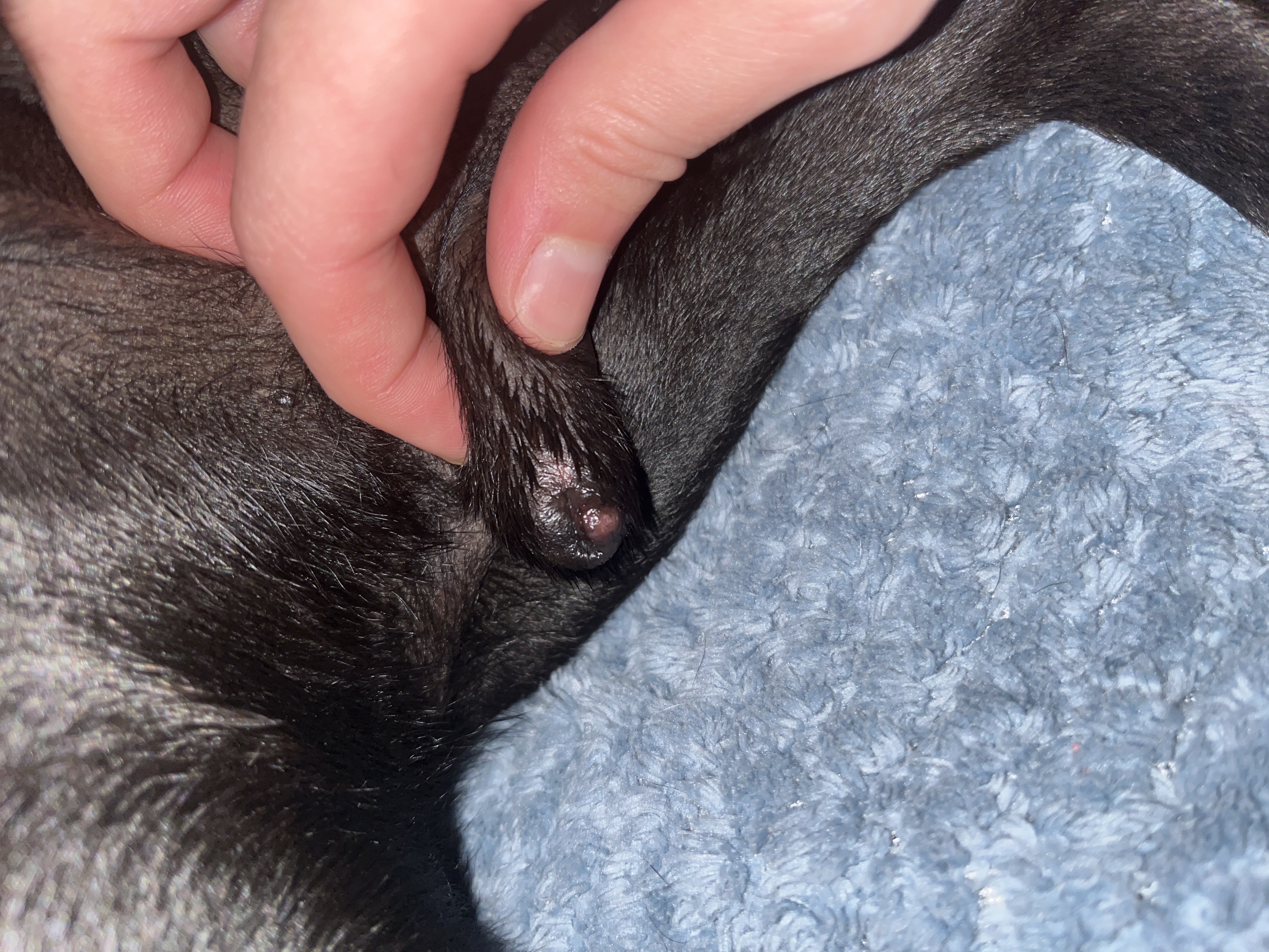 Dobrý den, takhle to vypadá jako zanícený pupínek, potírejte to desinfekcí a určitě by to mělo během pár dní mizet, pokud ne, raději zajděte k veterináři.