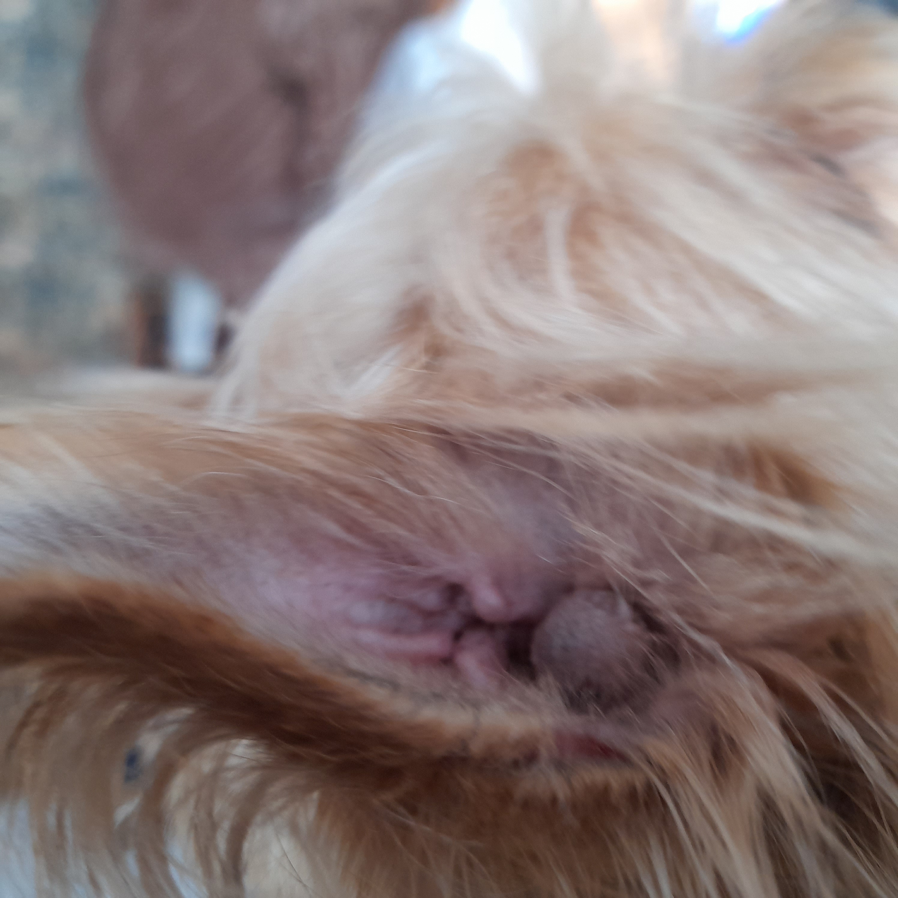 Dobrý den. Podle snímku to spíš pripada na pevný útvar. Nemyslím si, že by pomohla propolisova mast a rizikový olej.Radeji navštivte veterináře. D pozdravem MVDr Jančík .