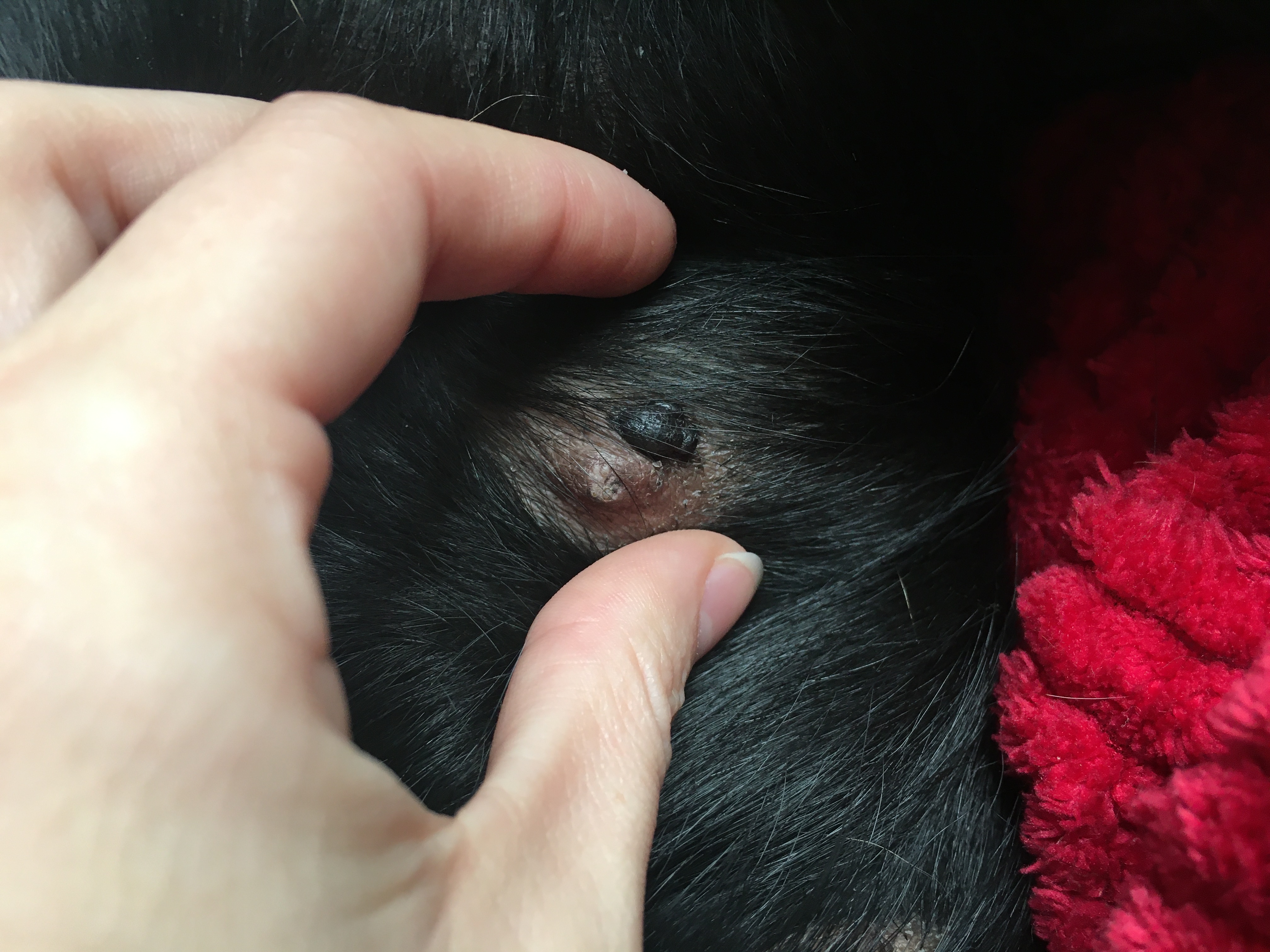 Černý výrůstek u ceciku fenky rotvajlerky