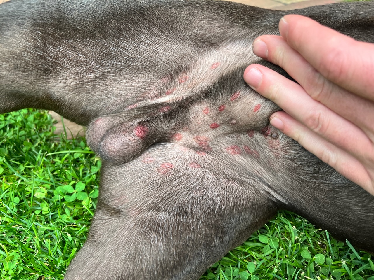 Dobrý den chtěl bych se zeptat,co muže byt příčinou těchto červených fleku,které se z ničeho nic objevili u mého psa . A zda-li je nutno jet co nejdrive k vet. Objevil jsem tyto fleky dnes dopoledne první byli pouze na jedné straně genitálií a o 10minut pozdeji už i na druhé. Nic si neskrabe ani nekouše nijak ho to nedrazdi chce si normálně hrát, jí a pije také porad stejně. ?? Predem děkuji .