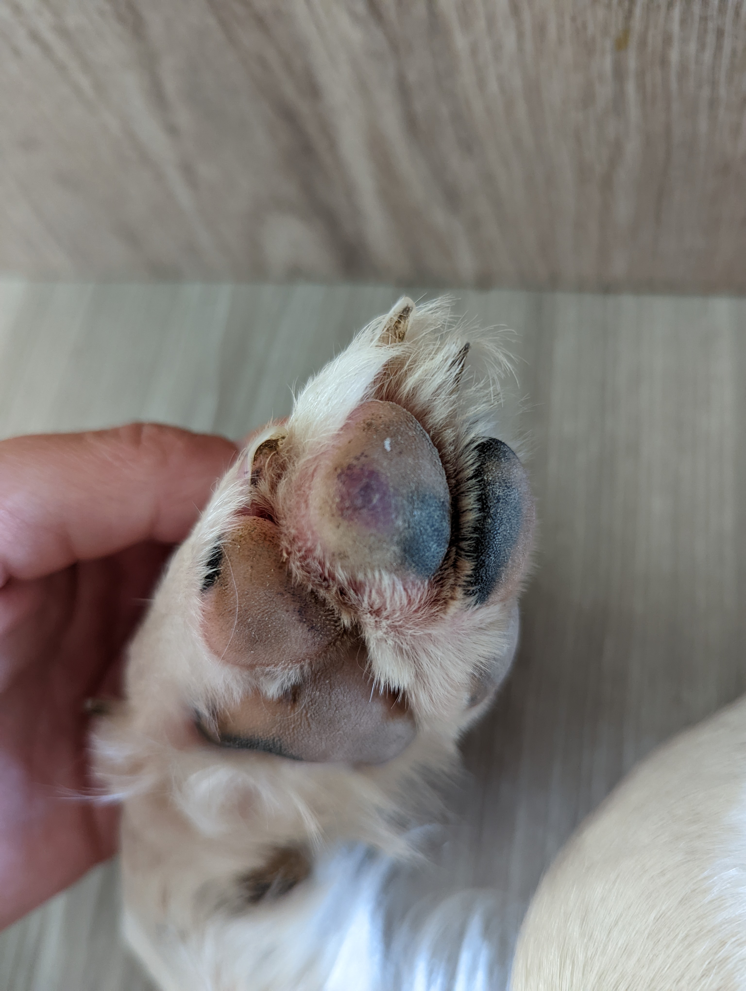 Dobrý den, moje Borderka s námi byla měsíc v Portugalsku, dostala preventivně Nex gard proti srdečním červům. V Portugalsku začala kulhat, měla ovšem "vřed" na tlapce, usoudila jsem, že krém na tlapky svou funkci nezvládl a spálila si nohy o dlažbu, po návratu kulhat přestala, ale jen na týden, opět kulhá, byla jsem na veterine, dostala nějake léky a mast, udělal se jí test na klíšťata a byl negativní, dále rtg ramínka a celé nohy, bez poškození, bylo mi řečeno, že to je poškození měkkých tkání a že mám sledovat, že analgetika pomohou. Nyní 6 dní bere cimalgex a pes kulhá stále víc, tlapku má neustále zvedlou. Teď jsem opět objevila flek na tlapce, posílám v příloze. Když jsem dala fotografii do googlu, okamžitě mě to odkázalo na Dirofilariózu???? chci se zeptat co jiného by to mohlo být? Je zvláštní že pes který téměř měsíc s týdenní přestávkou kulhá, má být zcela zdráv. Vzhledem k tomu, že je temperamentní jeden rok stará Borderka, tak ji nelze držet příliš v klidu, natož takto dlouhodobě. V úterý se opět chystám na veterinu, ale ráda bych znala názor i jiného lékaře. Předem děkuji za odpověď a přeji hezký den. S pozdravem Žaneta