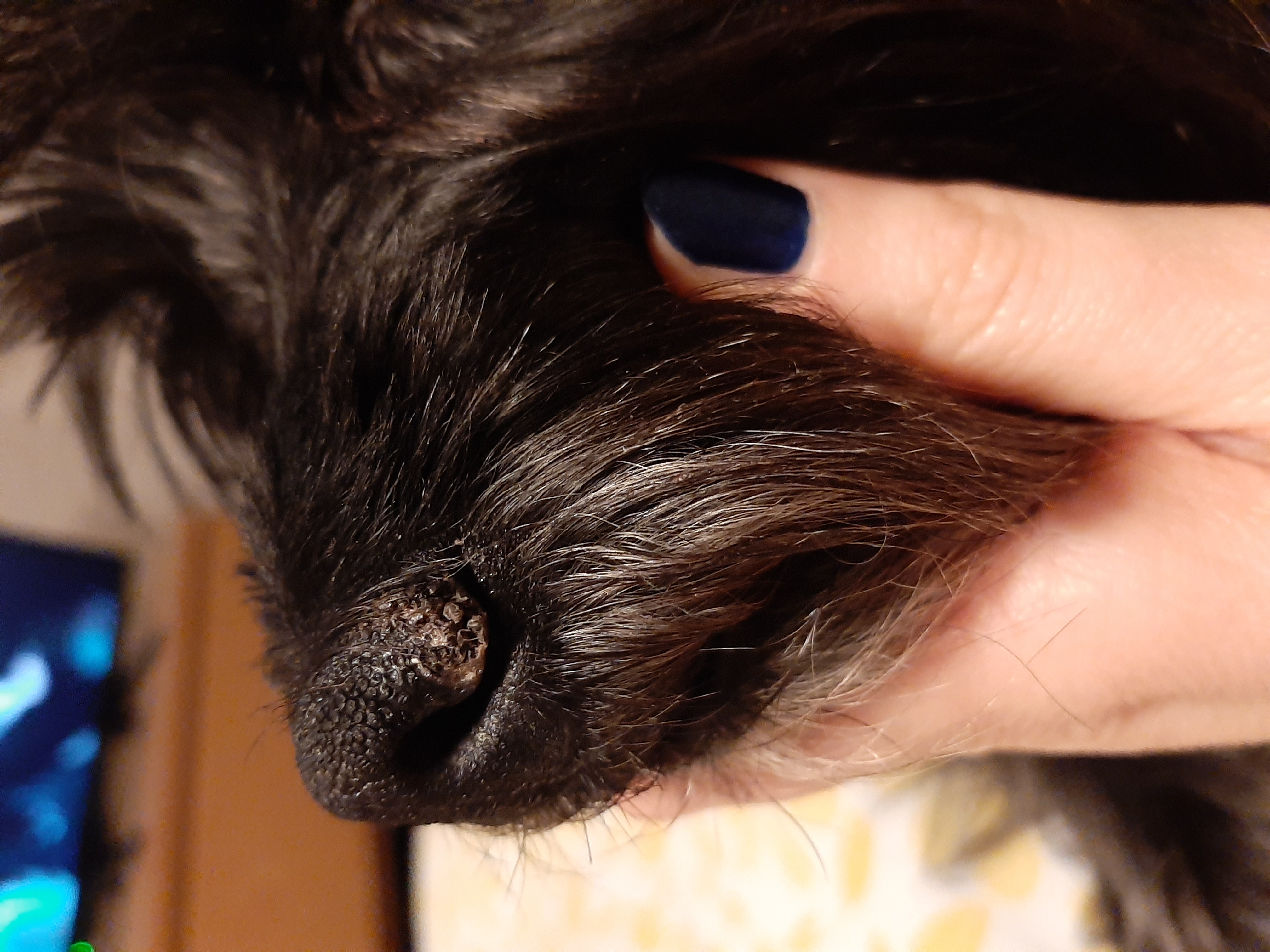 Dobrý den, moje krizenka knirace,nyní 8,5 let, byla od malička neustále nemocná. Nyní bere Letrox 100 na stitnou zlazu, půlku ráno a půlku večer před jídlem, urologickou pastu po jidle, glandex na analni zlazky, ma zuzenou prudusnici a cca v roce vykastrovana a operovany portosystemovy zkrat/shunt. Byla několikrát hospitalizovana se zánětem žaludku, tenkého nebo tlustého střeva a neustále ma potíže s mocovymi cestami či mechyrem, proto ta uro pasta. Nyní již několik měsíců ma na čenichu zvlastni jakoby vyrazku,na nose ji zasycha sopel a nos se ji droli,z obou stran,viz foto. Veterinarka to přisuzuje štítné žláze...vypadá to,že se to horší, mažu ji to každý den bio kokosovym olejem,jinak ho má strašně suché. Také ji ulpivaji "šušně" v cenichu, opatrně je odstraňují vatovou tycinkou. Nemáte zkušenost co to může být,co to zpusobuje a jak ji pomoci? Děkuji. Eva Pilařová