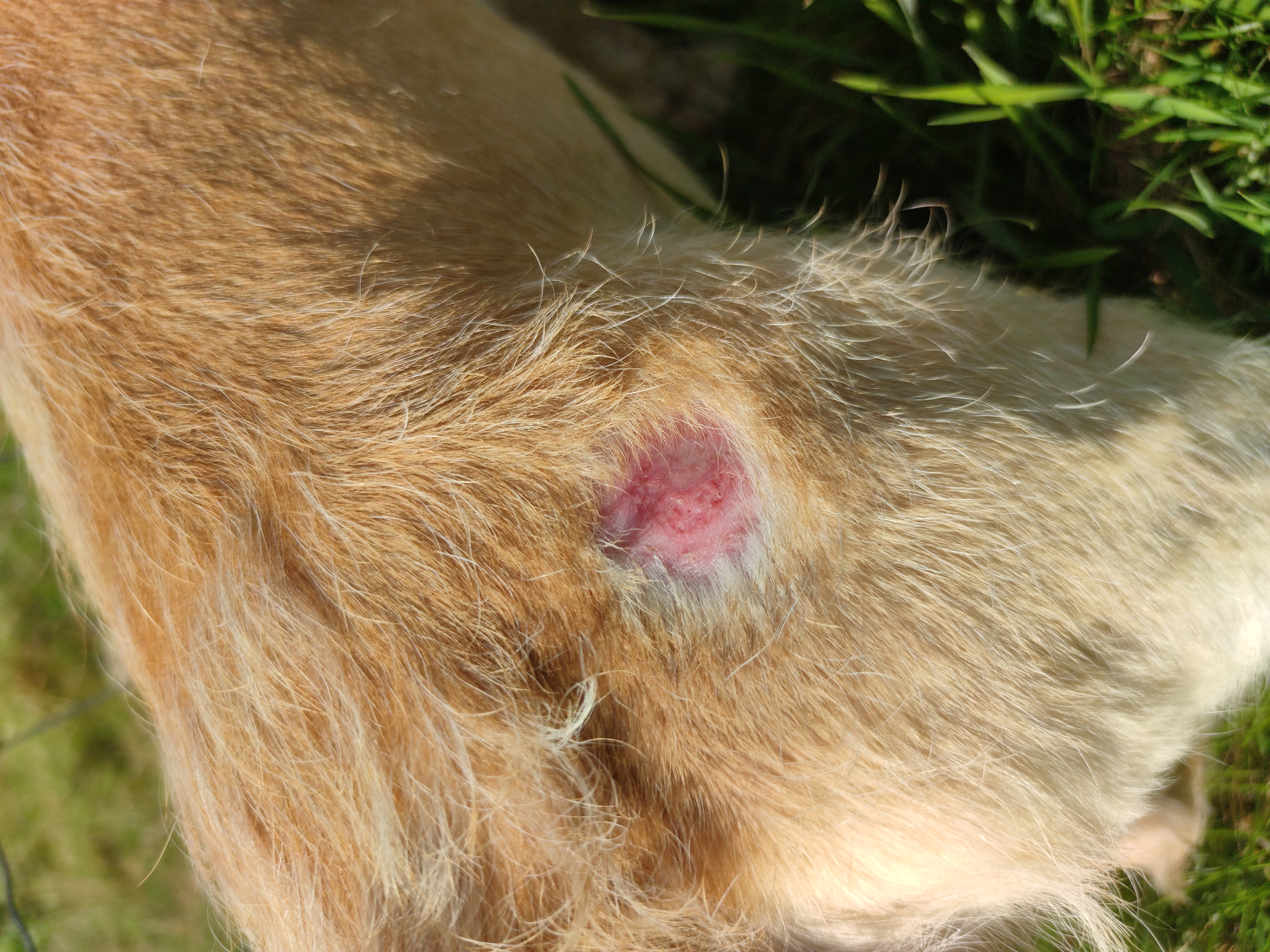 Dobrý den, vypadá to jako spálenina či zapařenina. Určitě co nejdříve navštivte veterináře. S pozdravem MVDr. Orlovská