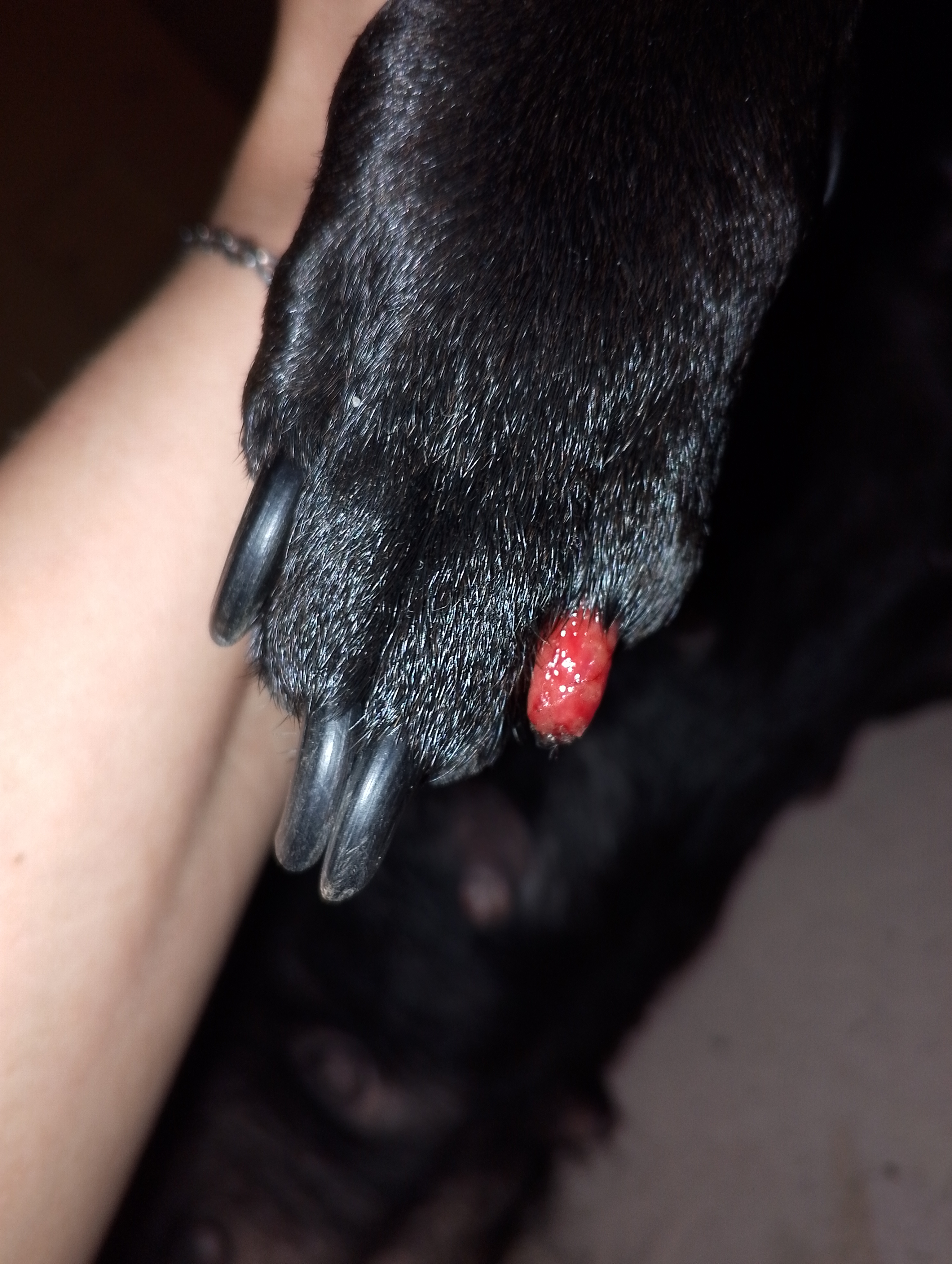 Dobrý den, ma 10 letá fenka, kříženka Stafford x Pitbull, si na pravé přední tlapce strhla úplně celý drápek a nyní tam ma jen odhalenou tkáň. Mam s ni zajit k veterináři, nebo ji to něčím namazat a zavázat?Nebo naopak nechat to přirozenou cestou zahojit a ničím nezakrývat?