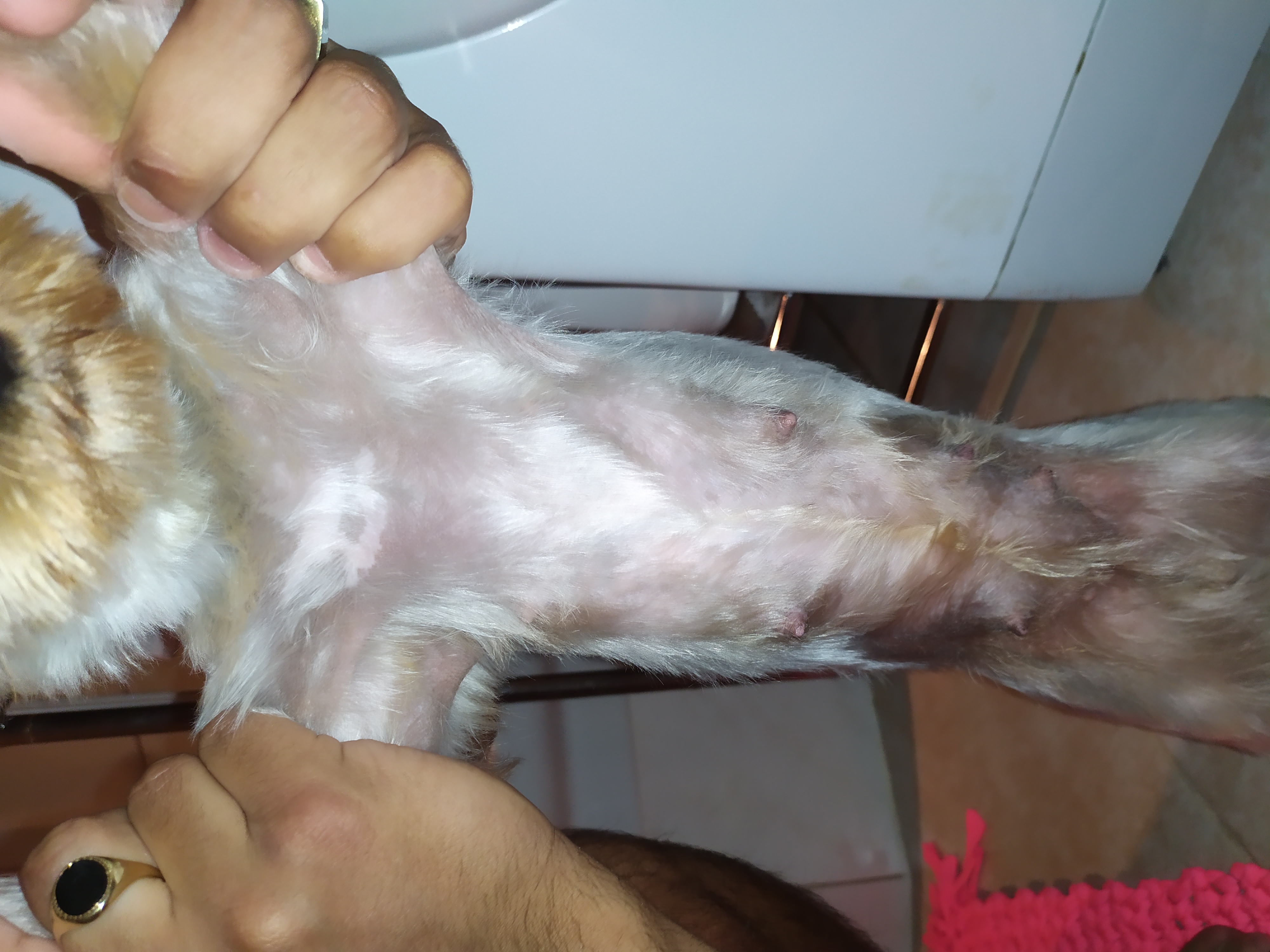 Dobry večer , Děkuji Vám , může to být také od sluníčka ? Teď jsme byli cca 4 dny na zahradě na chatě , zda to nemůže být od slunce, pač jsem koukal a má to i na zádech pod srsti ..