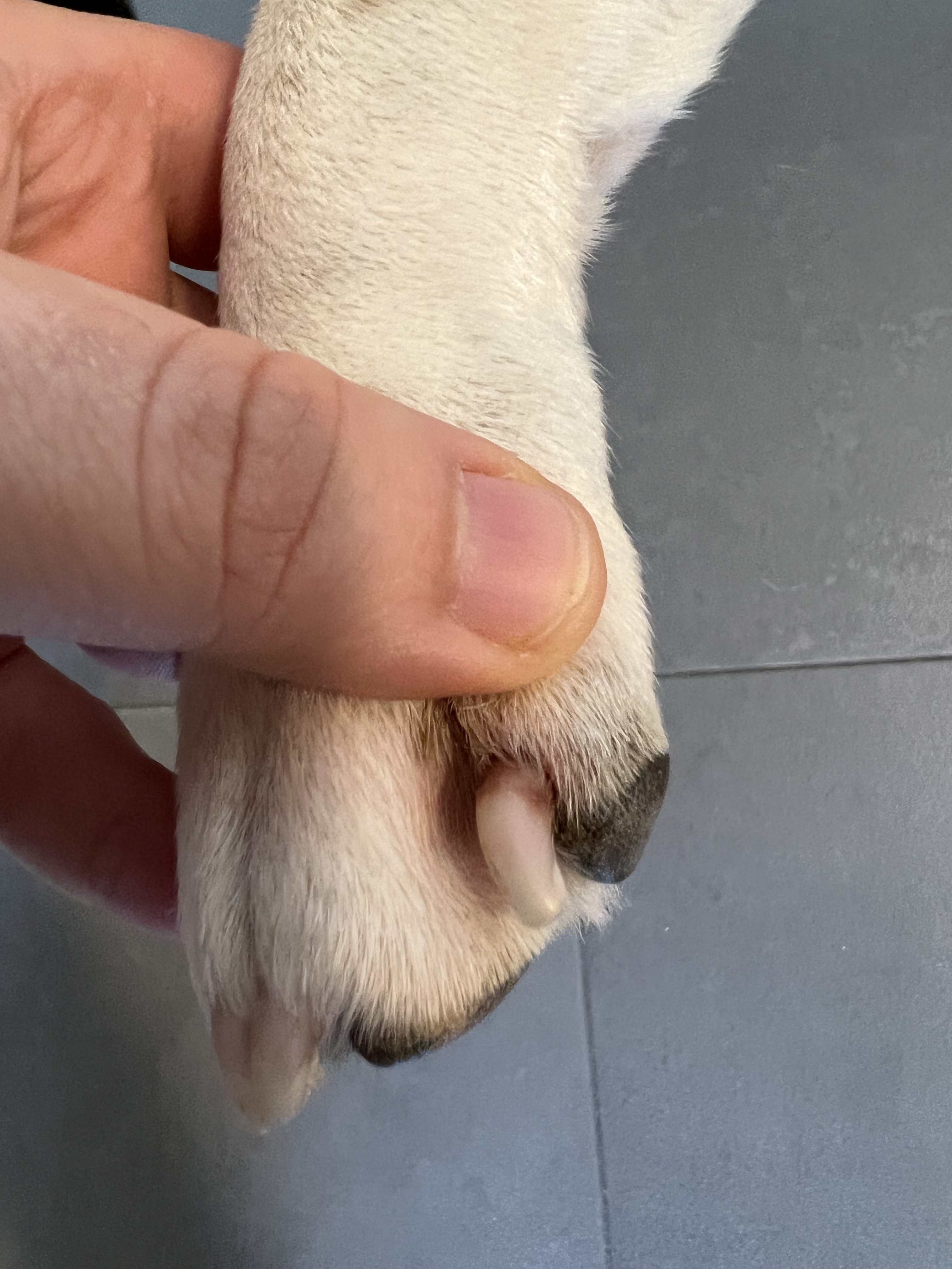 Dobry den, u naseho 8. mesicniho fr. buldocka jsem si vsiml, ze kolem krajniho drapku... a to jak na leve predni tak prave predni pacce... ma u korene, resp. v miste kde vystupuje drapek z kuze hnede zbarveni. To slo castecne odstranit mokrym hadrikem.. struktura podobna jak zaschla krev nebo spina. Zvlastni je, ze to mel na obouch packach a jeste k tomu na stejnem drapku. Je to takovy hnedy pigment.. Jinak packy jsou v poradku. Nic zarudleho, ani si to nelize, nepajda a pri manipulaci zadna reakce na bolest. PS: fotka je jiz realizovana po utreni hadrikem.. Toto zbarveni tam jiz zustalo. Moc dekuji Vice fotek pripadne jsem nahral na uschovnu.. Moc diky: http://www.uschovna.cz/zasilka/FLHS8AZA9I9GRAWV-F4H