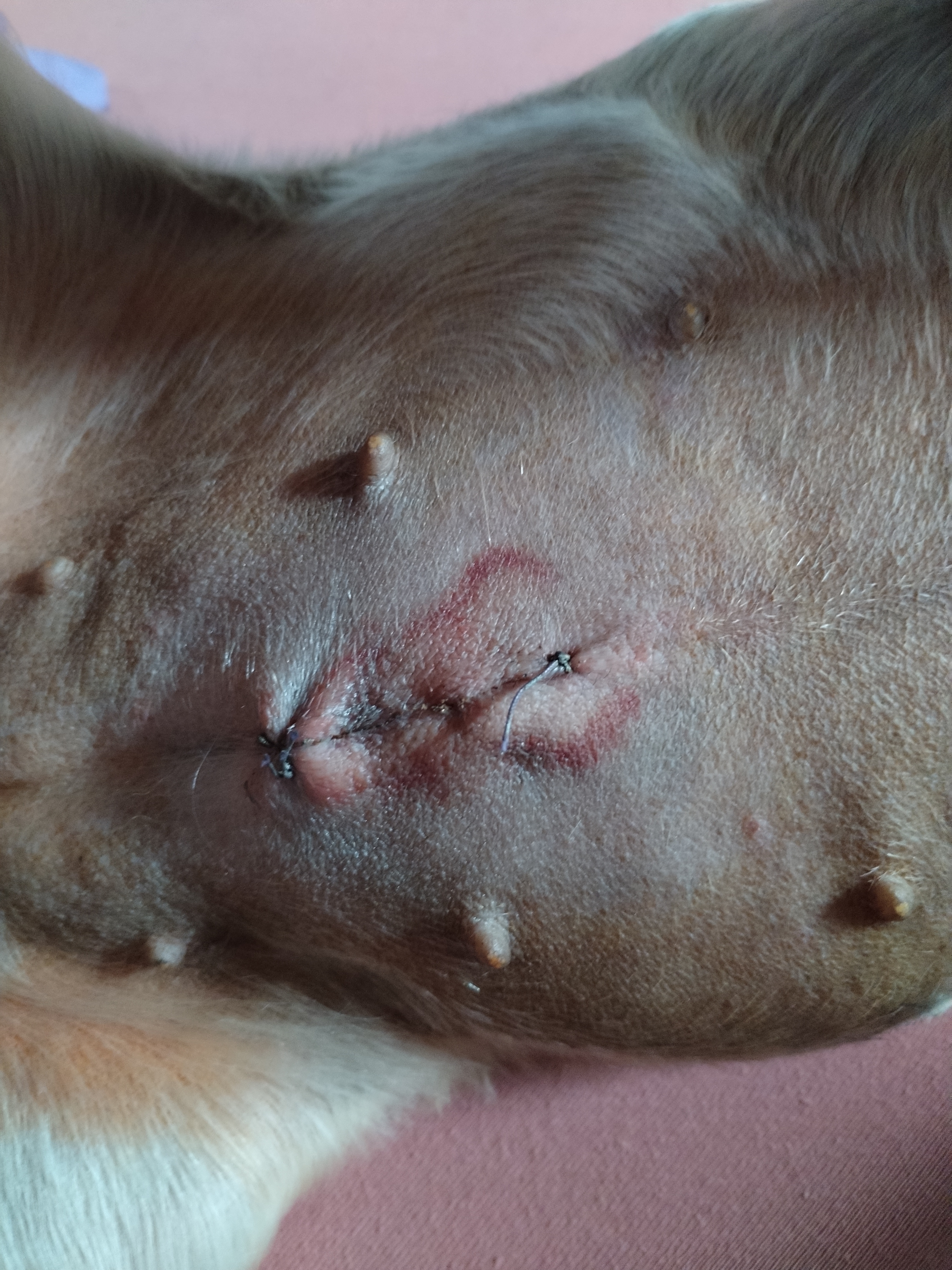 Dobrý den, v úterý ráno jsme byli na kastraci a dnes je čtvrtek a jizva vypadá takhle. Je to v pořádku? Nikdy jsem žádné jizvy neviděla a vůbec nevím jak se to hojí. Ránu si nelíže, dáváme jí obleček. Jen se mi nezdá jak to má okolo červené, ale snad jen zbytečně vyšiluji.