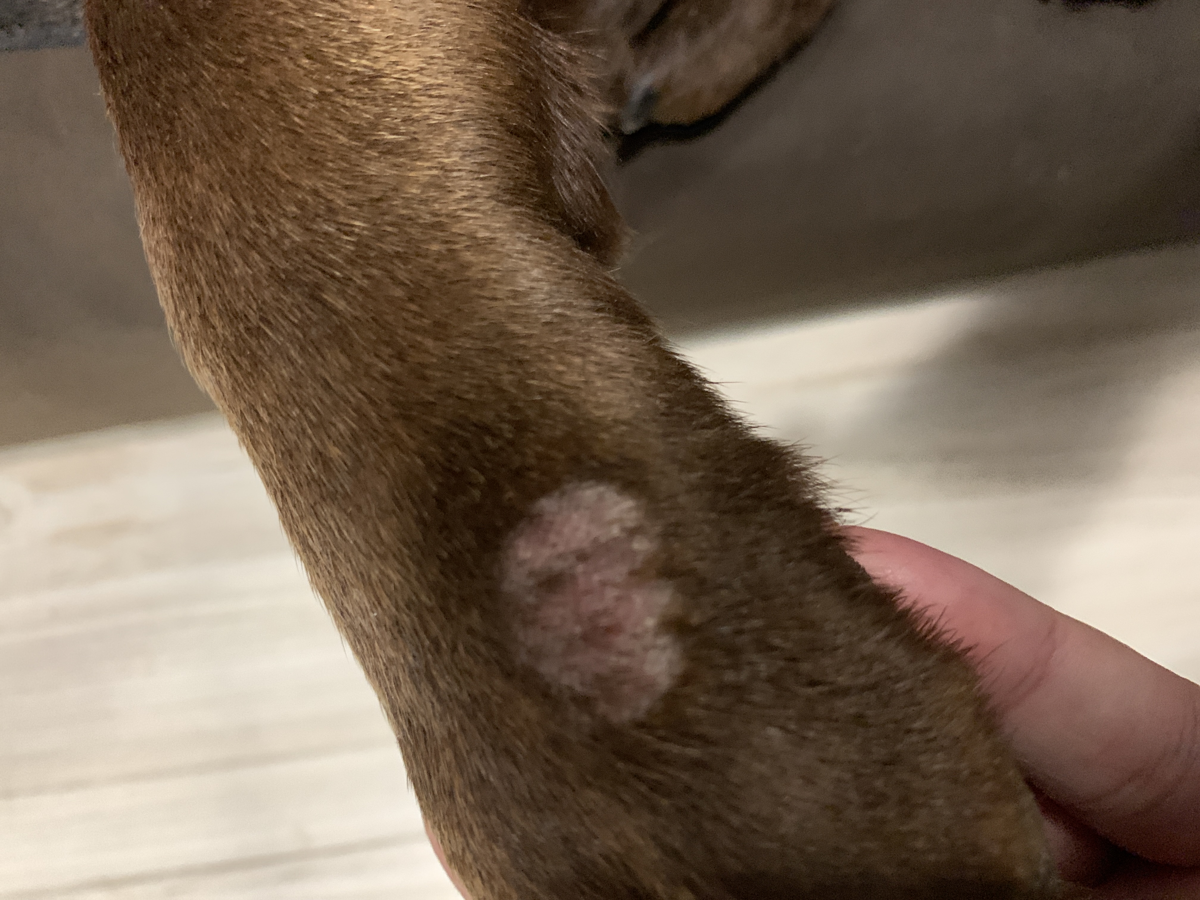 Dobrý den. Může se jednat o mikrobiální přemnožení s přítomnosti kvasinek, nebo tzv.hot spot.Lecba je pomocí šamponu 4% SkinMed Clorhedicin.sampon+spray s obsahem atb+kortikoidu na postižené mista+ochr.limec proti lizani. S pozdravem MVDr Jančík.