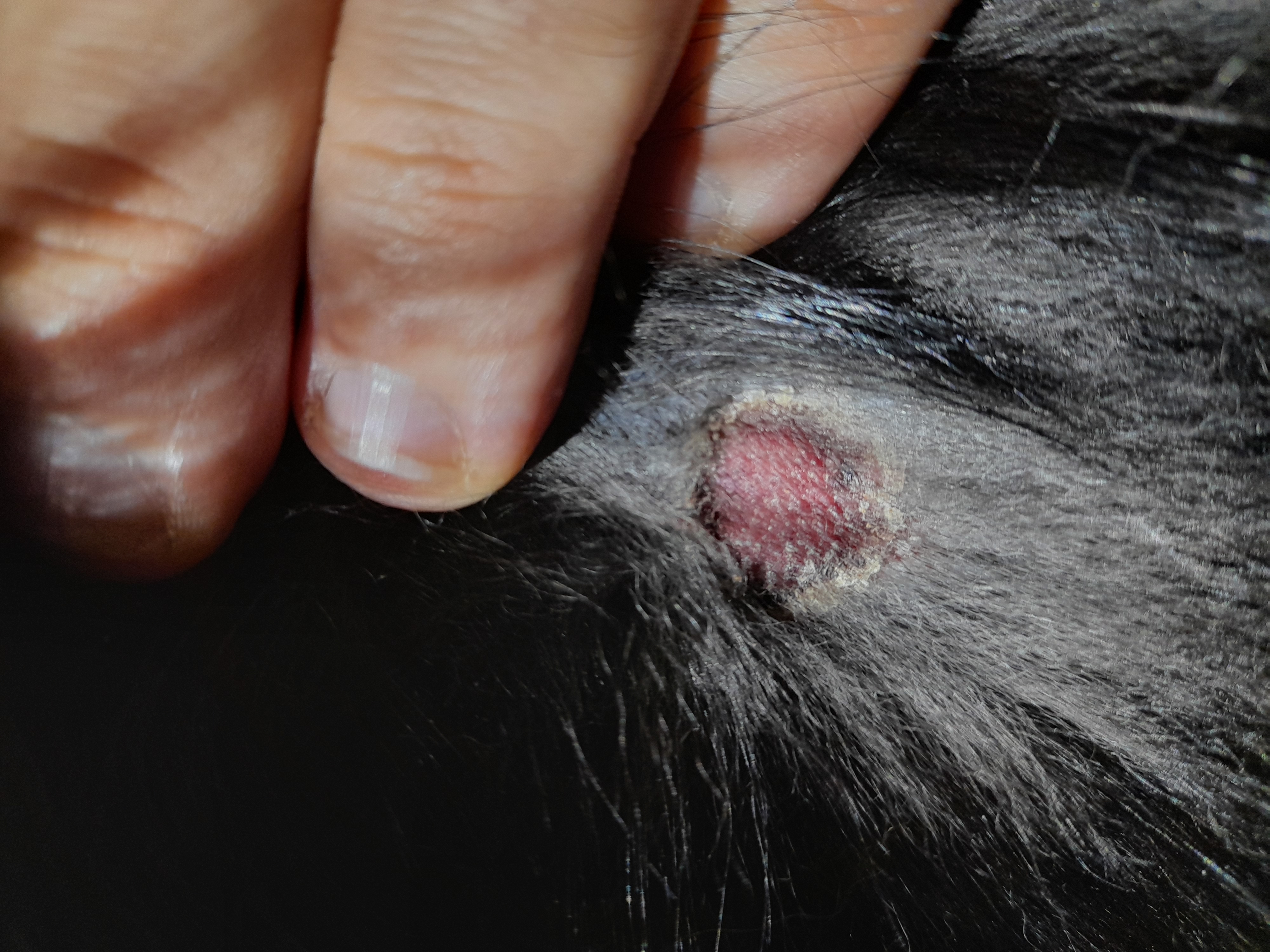 Dobry den, objevili jsme u psa na zadech toto na kuzi. Pomohli byste nam s identifikaci? Predem dekujeme za odpoved