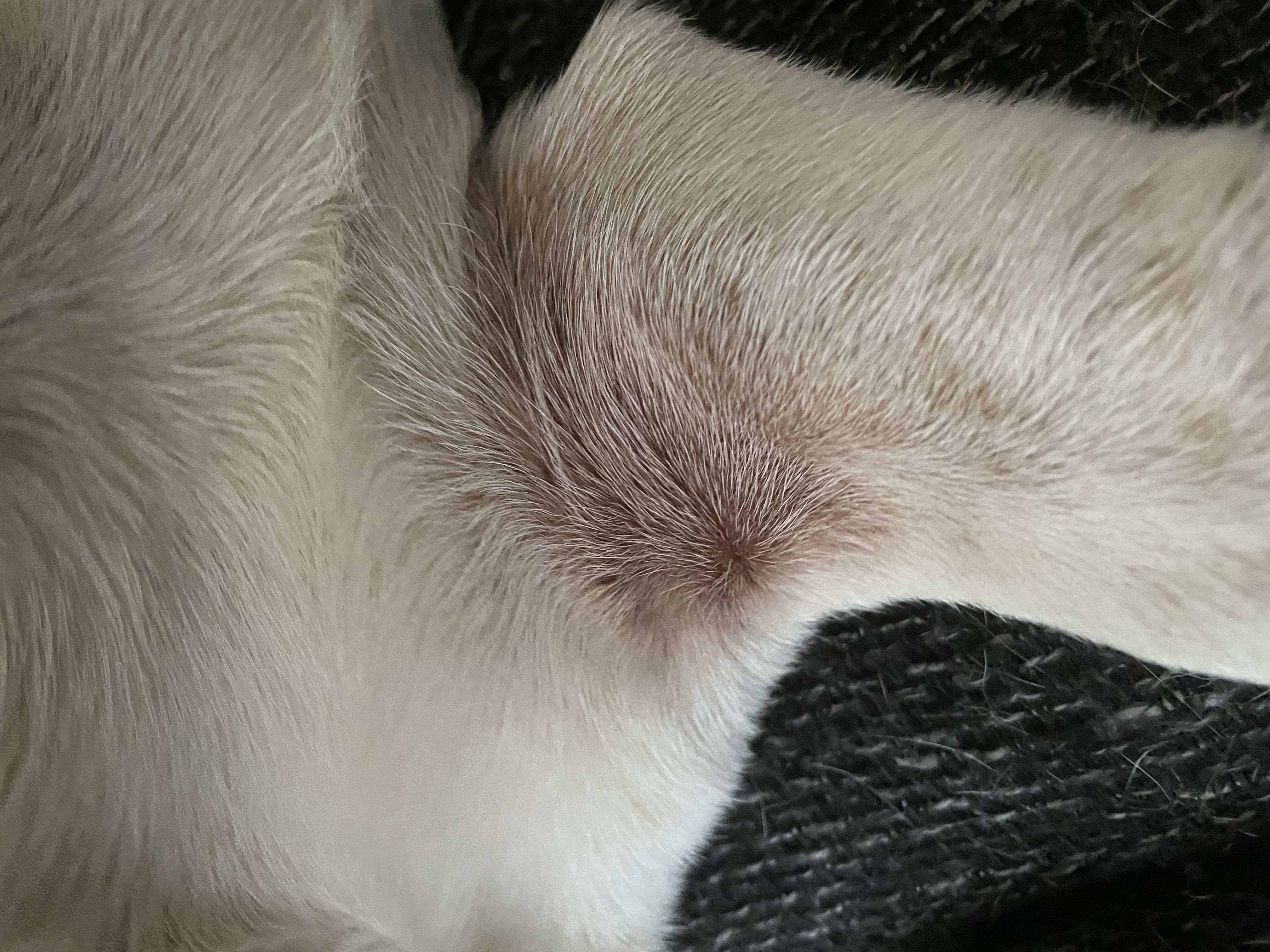 Dobrý den, našemu pejskovi se v záhybu přední nohy vytvořilo toho holé místo (viz foto) s načervenalou, narezlou kůží. Nevšimli jsme si, že by si pes místo nějak lízal nebo se s ním snažil něco dělat. Občas si líže jenom chvíli packy, a to především po tom, co se vrátíme z procházky, tudíž jsme usuzovali že si čistí packy z venku. Na packách není viditelná žádná změna. Pak mě ale napadlo, aby se nejednalo o nějaký kožní problém, je to možné? Děkuji