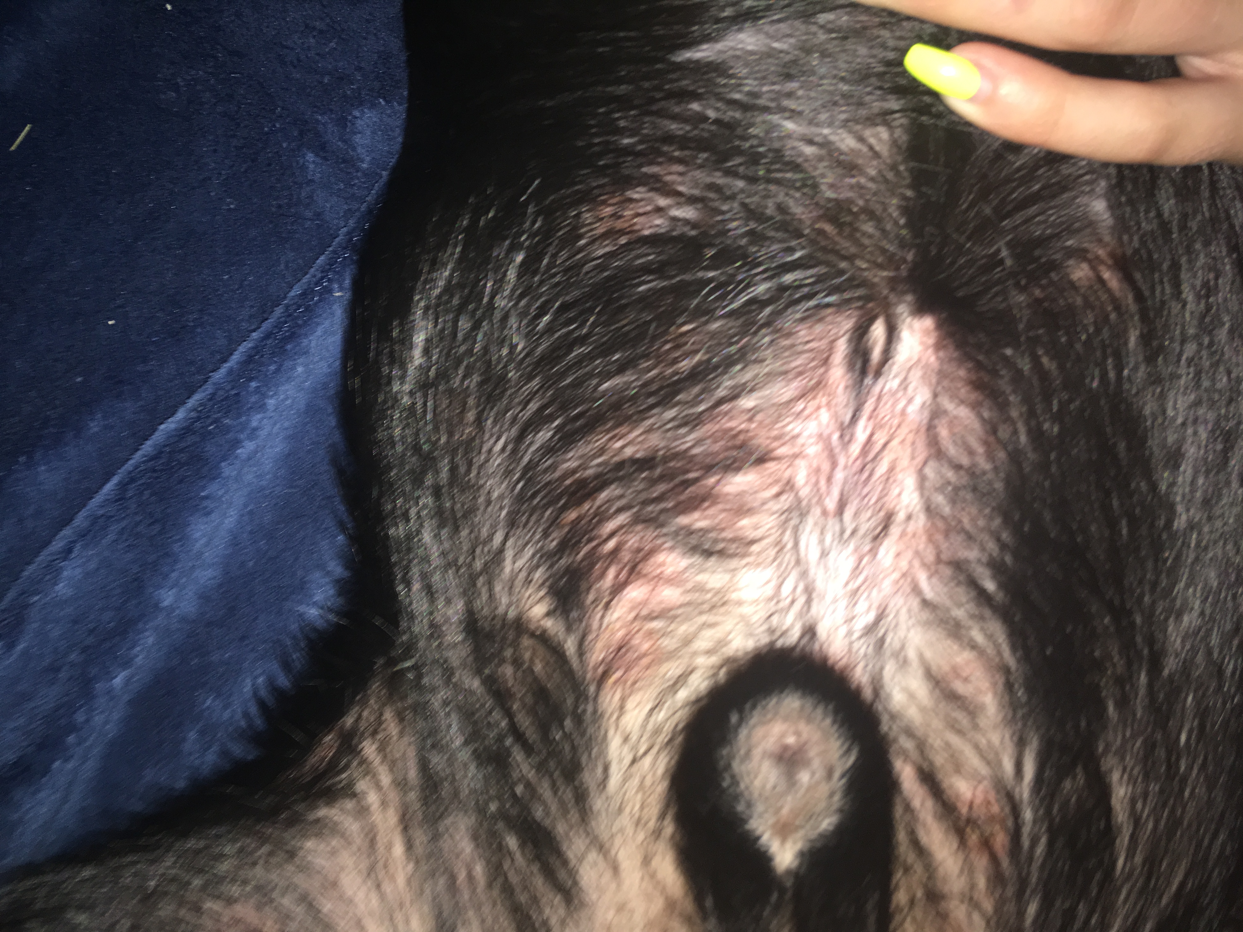 Dobrý den, podle fotky a popisu bohužel diagnózu nestanovím. Nicméně určitě pomůže vyšetření u veterináře. Příčinou můžou být blechy (a to i když je na psovi nevidíte) nebo jiné parazité, koupel v přírodní vodě s přerostlými sinicemi nebo i potravní alergie. Pěkný den, VŠ