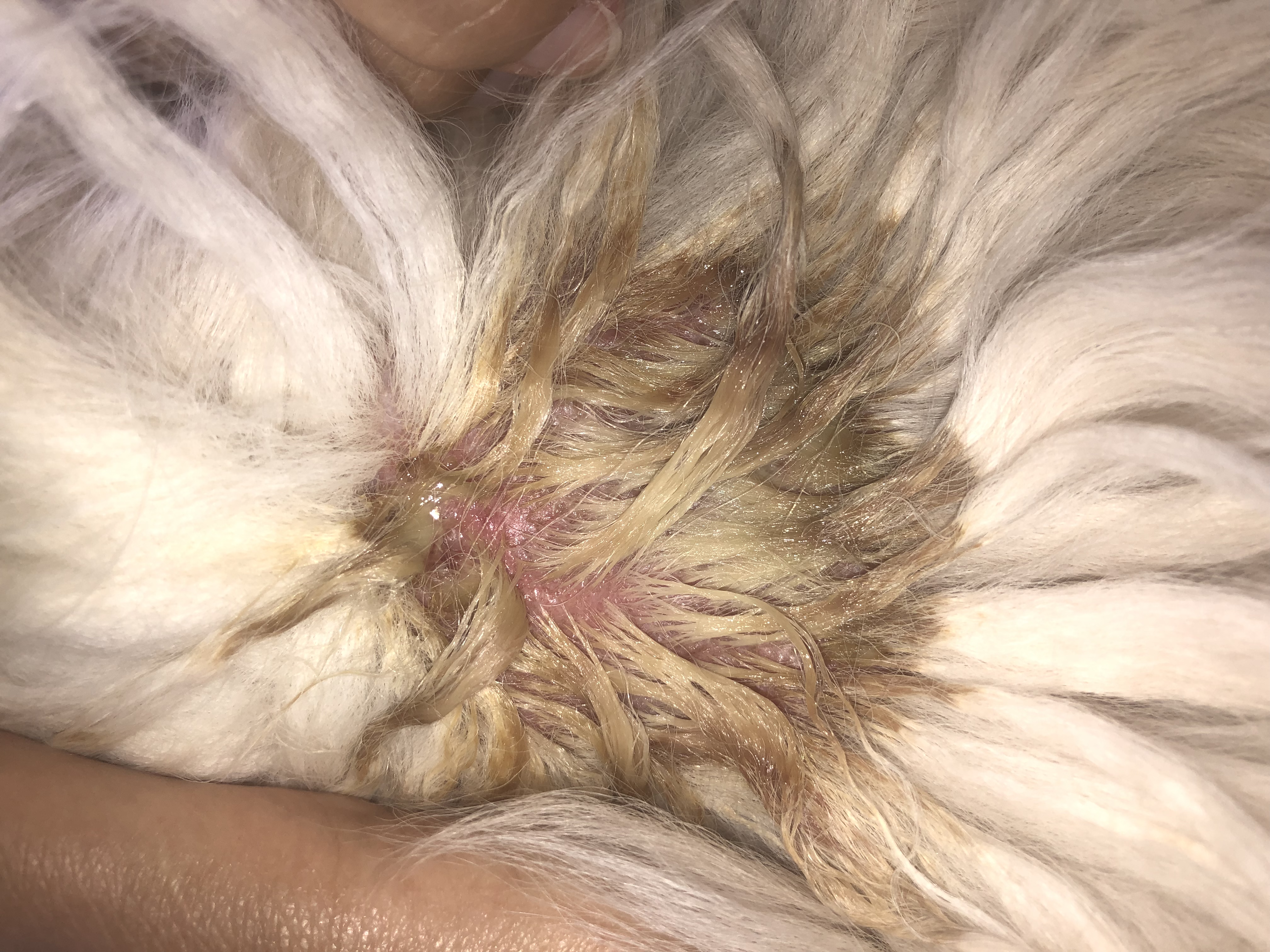Dobry den, paní doktorko/pane doktore, Moc bych chtěla poprosit o radu - naše Veterina nás může vzít až ve čtvrtek… naší čtyřleté fence retrívra se na krku vytvořila mokvající kruhovitá rána o průměru 5cm, zároveň ma červenější bříško a na nožičkách takové pupínky se žlutou čepičkou…Dva dny pred vytvořením rány se letos poprvé koupala, muze to s tím byt spojené… prikladam i fotky. Moc Vám dekuji a přeji hezky večer. S pozdravem Iveta K.
