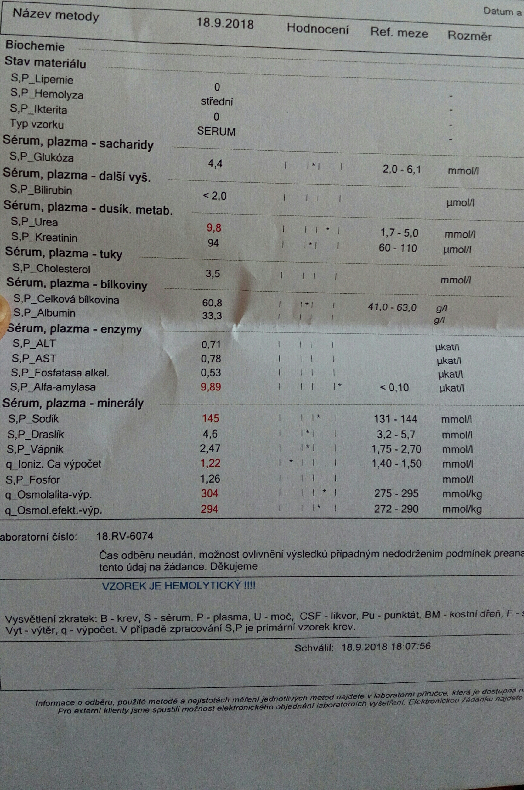 Dobrý den, Dle fotky se jednalo zřejmě o lidskou laboratoř čili červená čísla jsou dle lidských hodnot které jsou jiné než pro psy, ne všchny testy jsou pro zvířata přenositelný. Jinak výsledky nejsou nijak dramatické, ale také ne úplně v pořádku a proto bychom doporučili zajít někam na konzultaci aby se dovyšetřilo podezření na pankreatitidu - zánět slinivky, který je velmi pravděpodobný. Hodně štěstí