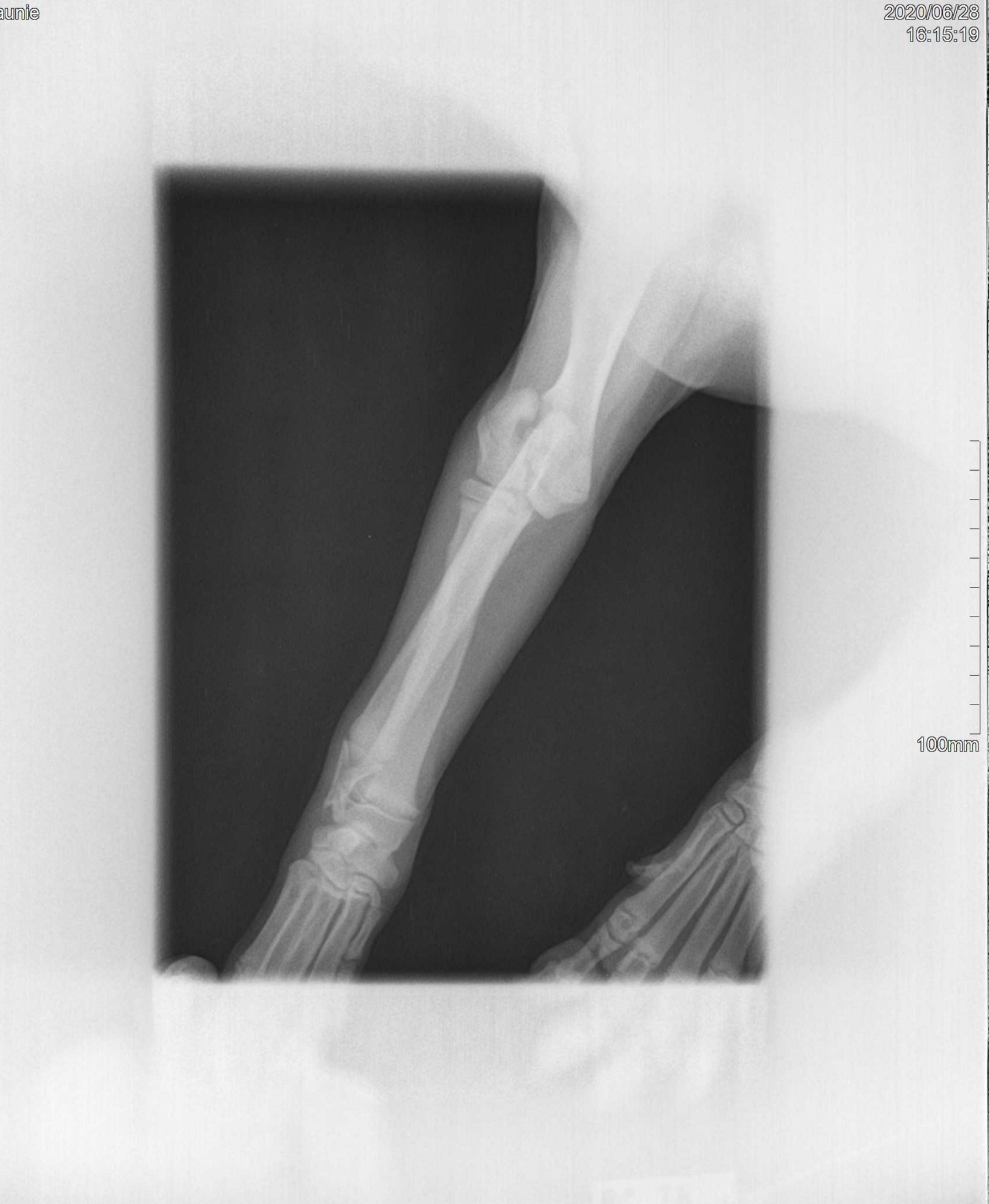 Dobrý den, Chci se zeptat a mít k porovnání další názor. Naše fenka labradora ( 4 měsíce) měla úraz pádem ze schodů. Na veterině mi řekli, že je tam fraktura v oblasti lokte a je nutná operace. Na druhý den byla provedena. Řekli mi, že loket spravili za pomoci silikonového vlákna a s prášky nás poslali domů. Teď je to 13.den od operace, vyndali nám stehy a řekli že noha je trochu vyrotovaná, ale pohyblivá. Že by se to mohlo srovnat až začne nohu používat a že můžeme začít s rehabilitační. Ideálně s plaváním. Fenka nohu vůbec nezatěžuje. Neustále ji má mírně pokrčenou, nepropíná ji a loket má o poznání větší než ten druhý i více od těla. Mám strach, že zůstane s následky do života, nebo že operace měla proběhnout jiným způsobem. Použít například nějaké šrouby. Má otázka zní.. Jak by jste postupovali vy? Zdá se vám postup správný? Co se s tím dá dělat v této fázi? Je možná případná reoperace? Jaké nám hrozí případné následky? Přikládám foto rtg. Předem děkuji za odpověď
