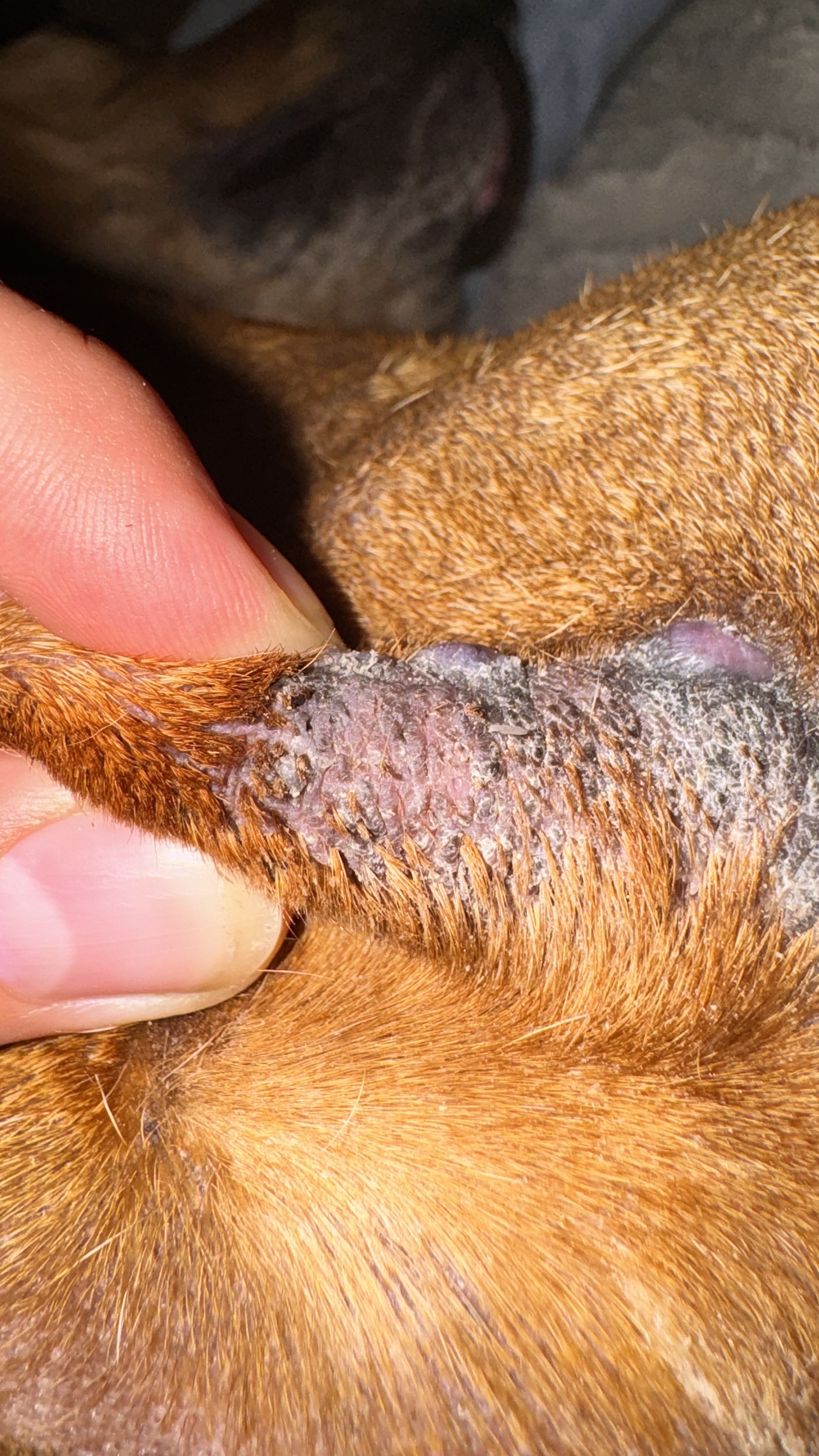 Dobrý den, už od jara nás trápí mozoly na loktech, které mokvají a pak praskají a vytéká z toho hnis a krev. Navíc mu z oblastí loktů vypadávají takové malé chuchvalce chlupů - půjde vidět na fotce. Byli jsme minuly týden na veterině a dostal antibiotika, užívá je už týden, ale výsledek úplně není takový, jaký bychom asi očekávali. Na tvrdém téměř neleží, většinou na pelíšku, gauči nebo koberci. Máme ještě počkat, jestli se stav nezlepší, nebo řešit nějak jinak? Atb už máme poslední tobolku. Jedná se o psa rhodeského ridgebacka, staří 5 let Předem moc děkuji