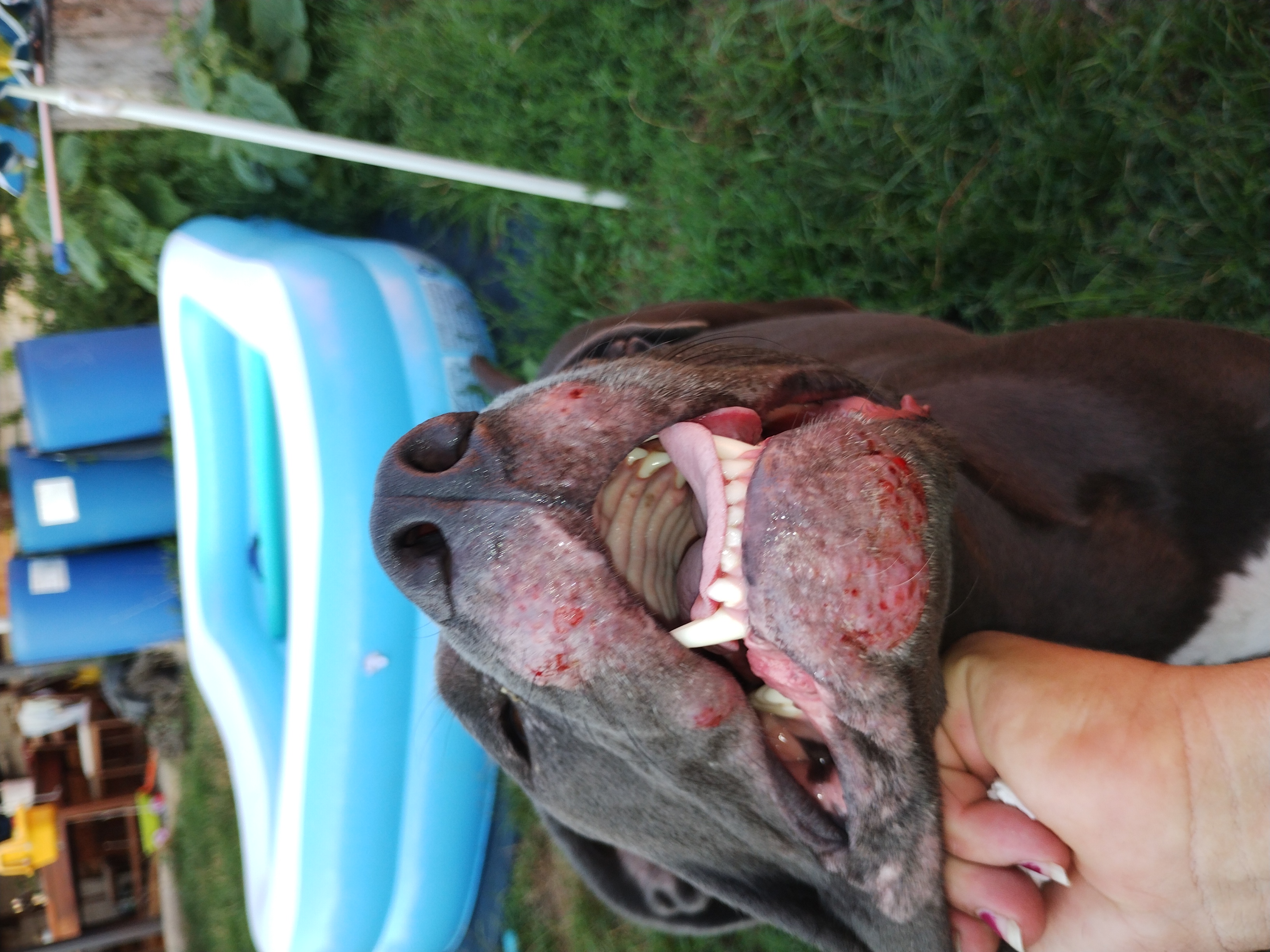 Dobrý den. Mám doma psa na týden na hlídání. Má nějaký problém kolem tlamy. Z něčeho co vypadalo jako odřené od hrabání děr, je brada a okolí tlamy lehce oteklé a na bradě je i jakýsi výpotek občas krev.Po dvou dnech co ho tu mám vidím zhoršení. Mám tu i malé dítě tak se bojím aby to nebylo nějak nakažlivé.Prosím o radu. Předem děkuji a přeji hezký den.