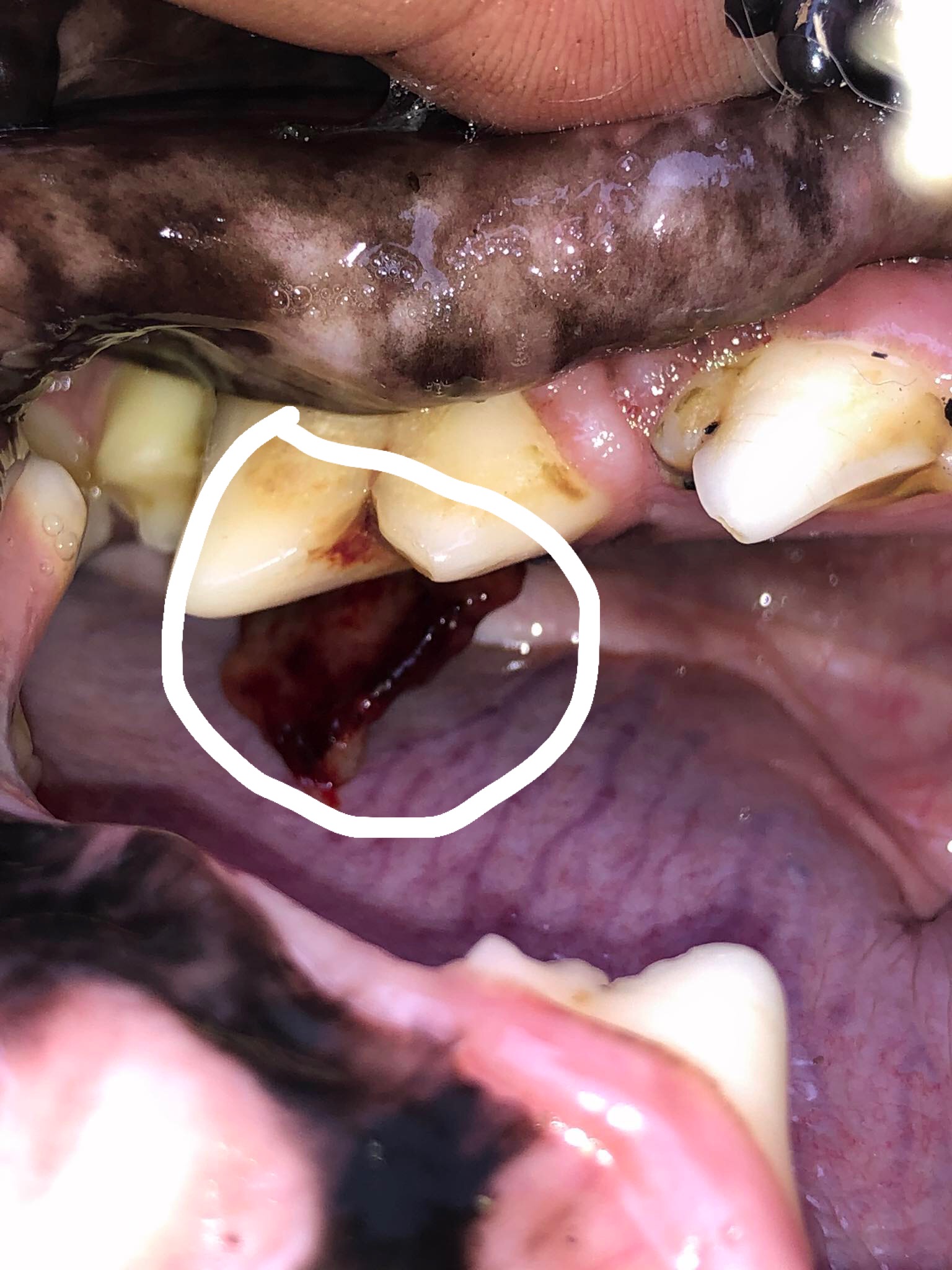 Dobrý den, prosím o radu než se dostaneme k našemu veterináři. Našemu 10 let zlatému retrieverovi začalo při kousani klacku krvacet z tlamy. Při prohlídce tlamy jsem objevila asi nárůstek na spodní čelisti na vnitřní straně zubů. Posílám fotku a prosím o radu co by to mohlo být. Moc dekuji.