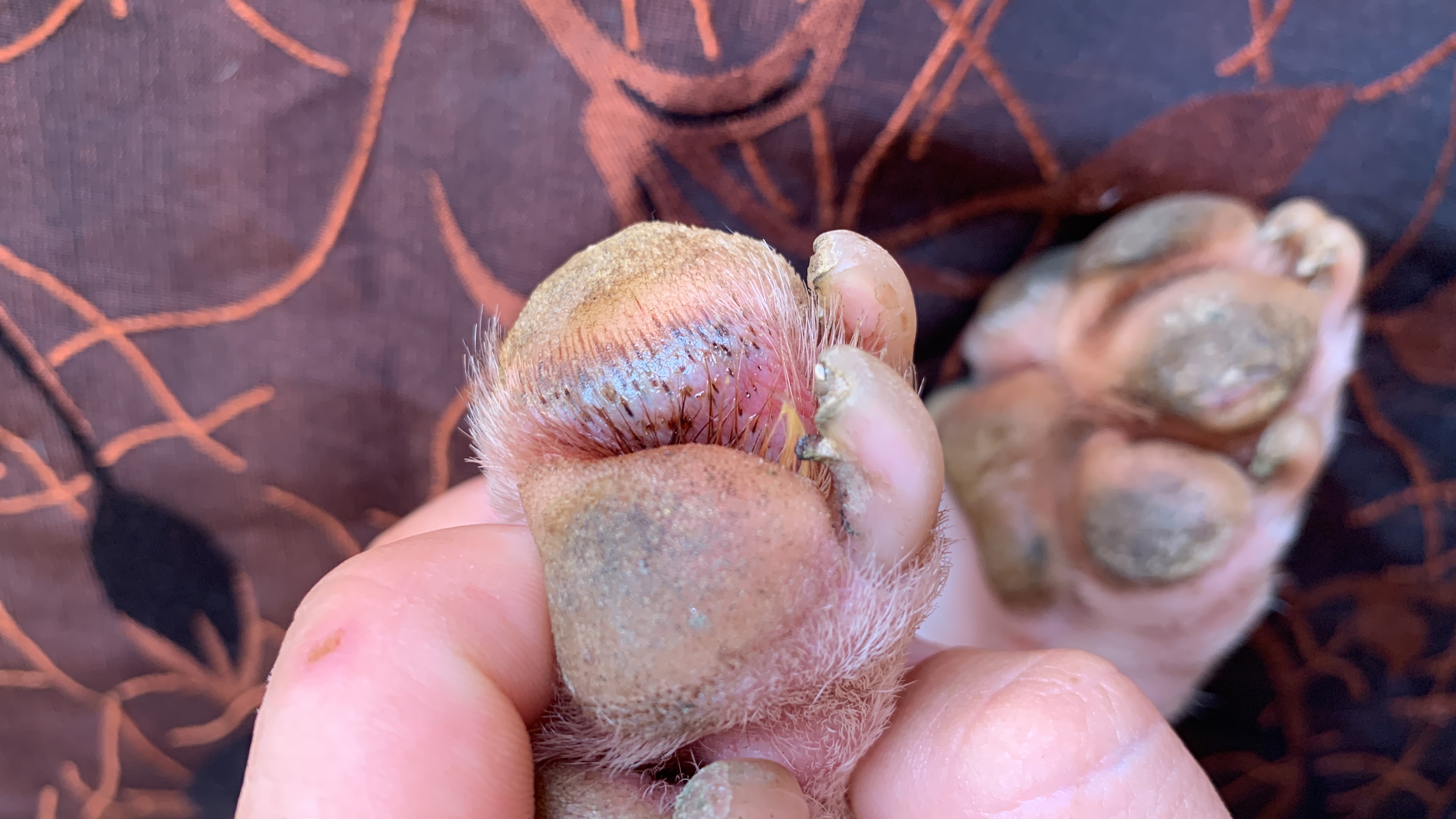 Dobrý den, ráda bych se zeptala na nějaké bližší informace ohledně nateklého polštářku viz na fotce. Pes to má pouze nateklé z vnitřní straně na tlapce. Co by to tak mohlo být popřípadě jak mám postupovat? Jestli jít hned na veterinu nebo zkusit nejprve domácí léčbu. Momentálně to má v obvaze spolu s Betadine alespoň pro vyčištění. Jedná se o 14m mini bulteriéra. Děkuji za odpověď.