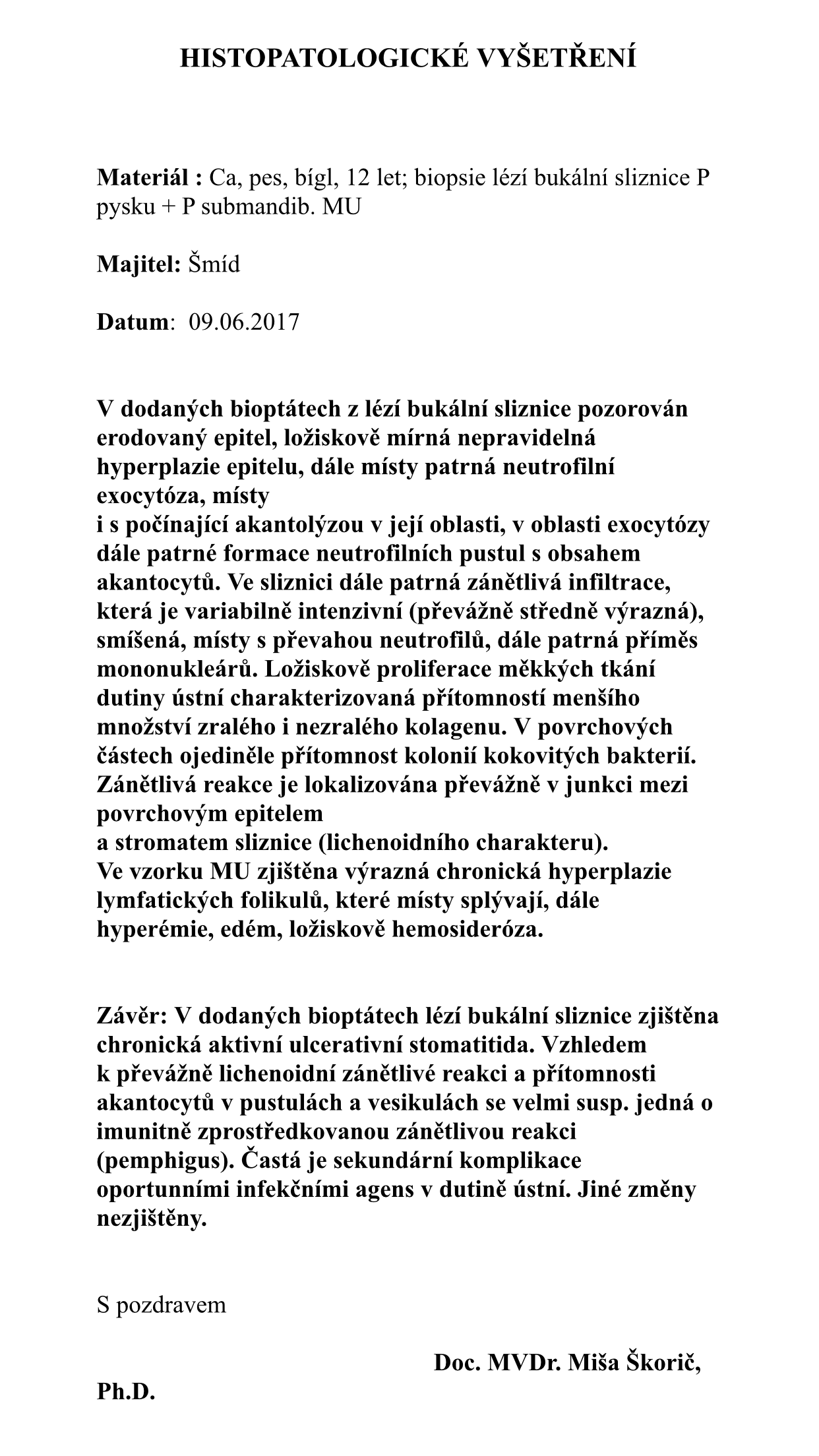 Dobrý den, chtěla bych radu ohledně léčby zvětšené uzliny u psa, věk 12 let, na krku pravá strana se zvětšila uzlina, po vyšetření krve, sona ( vše v normě, jiná uzlina nezvětšená) odeslán vzorek na hystologii( výsledky překládám). U psa dle výsledků zjištěno autoimunitní onemocnění, možné kožní infekty. Momentálně pes na léčbě prednisonem, uzlina se nejprve zmenšila, poté zvětšila a stav zůstává. Veterinář řekl, že se celá uzlina neodstraňuje a alespoň můžeme pozorovat stav ( zda se mění). U psa došlo k přidruženým problémům jako je svědivost kůže, škrábání, stroupky, holá místa. Navštívili jsme jiného veterináře ( z důvodu změny bydliště, chtěli jsme rychle ulevit psovi) ten doporučil odstranění uzliny a divil se proč jsme již tak neučinili hned, že by pes nemusel užívat prednison. Nevíme teď jak se rozhodnout zda nechat uzlinu odstranit nebo ne? Nemůže po odstranění dojít k problémům s jinými uzlinami s tím, že tělo napadne jiný orgán?
