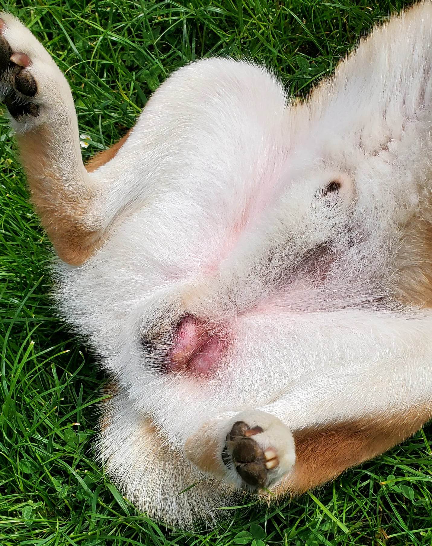 Dobrý den, V posledních dnech si můj pes Shiba Inu začal intenzivně olizovat varle (viz. fotografie). Jakmile si ulehne do trávy, přestane i nutkání si dané místo olizovat. Za chůze se ale často zastavuje. Souběžně s tím líná, ale takto obsesivně se nikdy neolizoval. Děkuji Vám