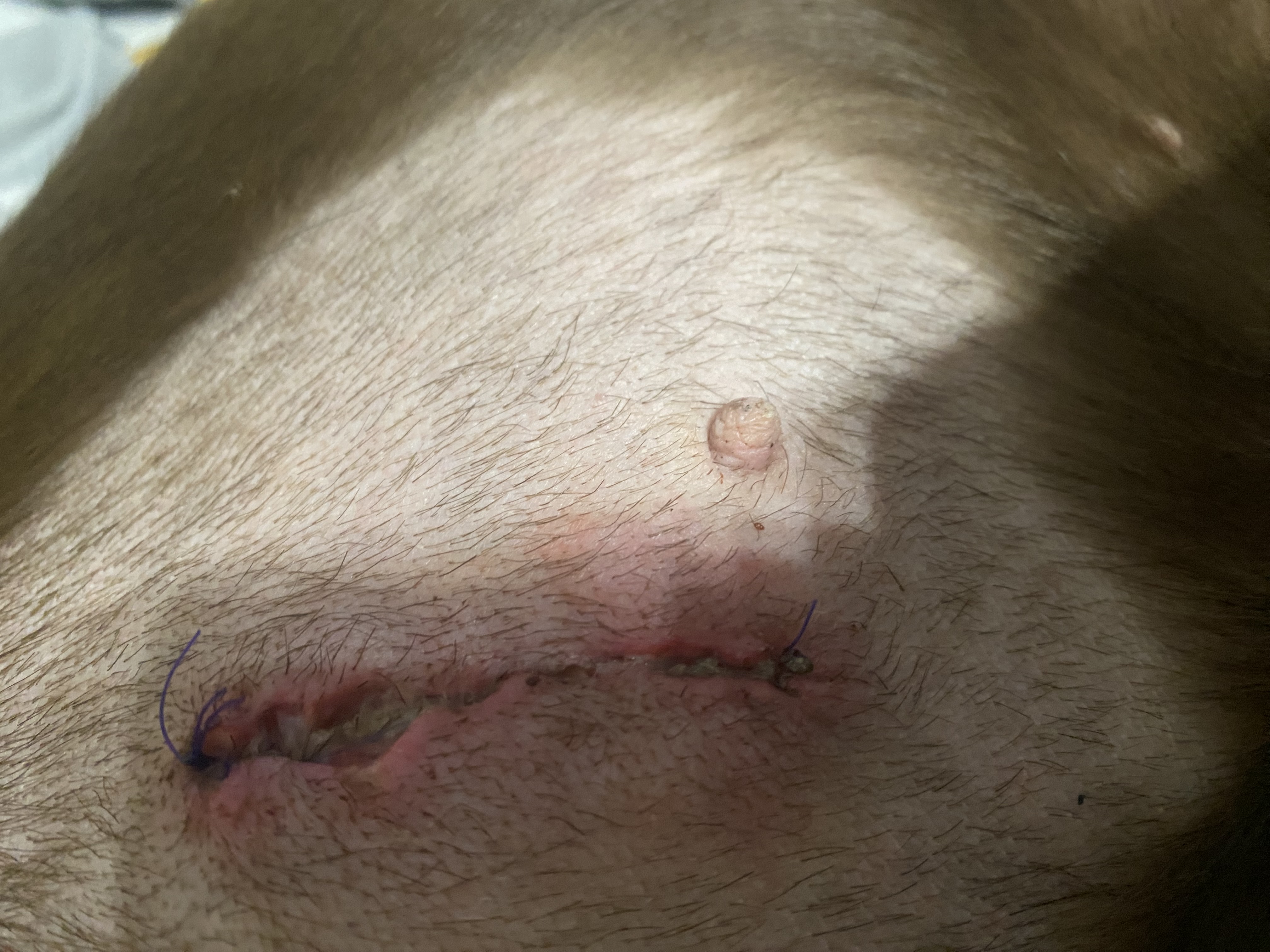 Dobrý den, 18/12 byla mije fenka vyndat bulku a rána se nám takhle otevírá, potírám to tekutým stříbrem ale náš veterinář není, máme jet na pohotovost? Dekuju
