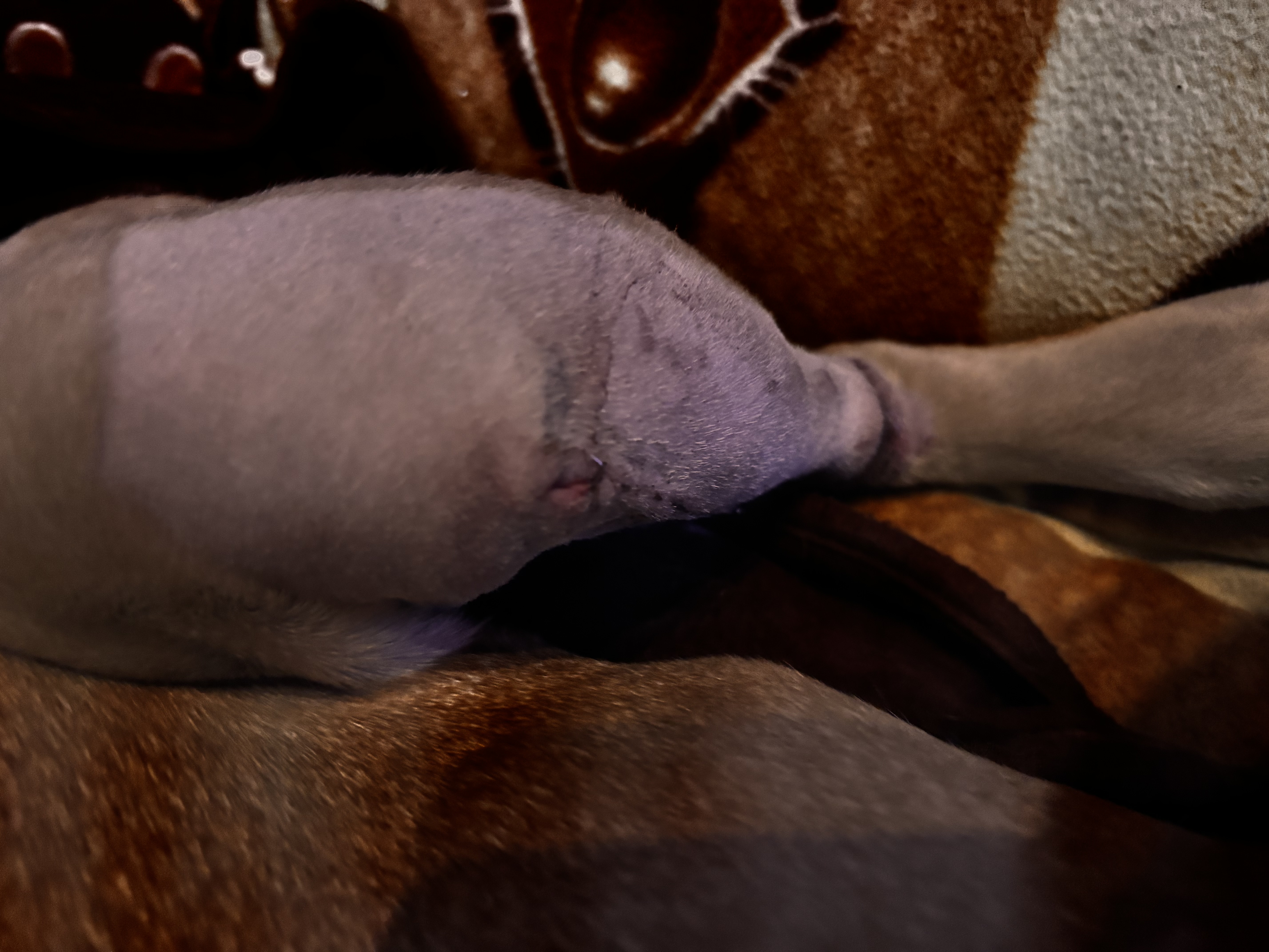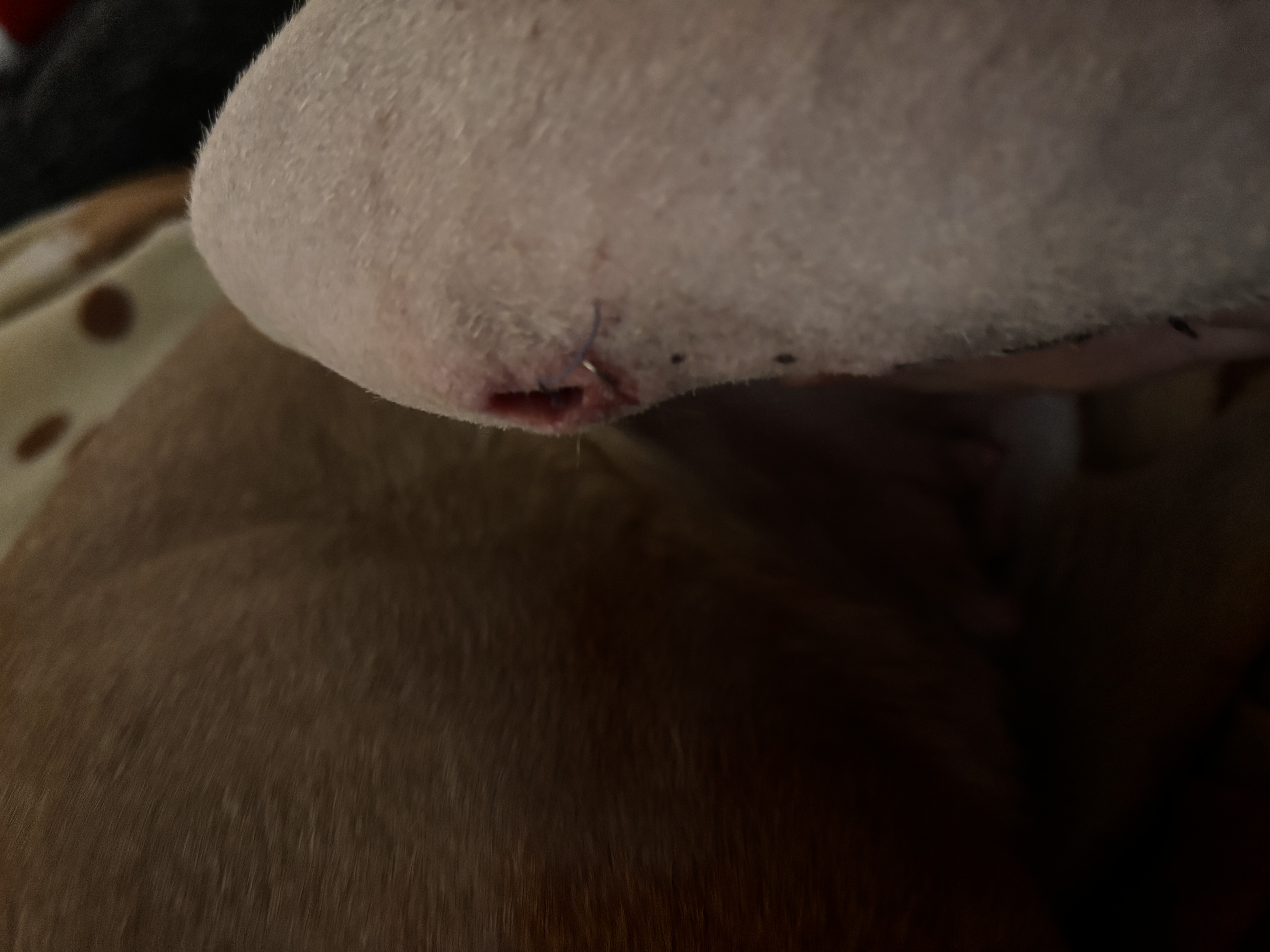 Dobry den. Mam dotaz. 15.12.2025 jsem byla s rocni fenkou na operaci menisku s pretrzenym krizivym vazem a spatnym uhlem kloubu. 21.12.2025 ji praskla nahore prvni steh. Tak jsme jeli na veterinu kde podstoupila operaci tam ji daly pod otevrenou ranu svorku jednu a ze ji to mame nechat volne a jen vodou ocistit a dat betadinu. Jenze mam porad takovy strach z toho ze to neni uplne dobre takze nevim jak dal. Zbytek rany uz je krasny a skoro i krasne zahojena. Jen ten vrch. Samozdrejme v tom ma zanek takze nam taky rekly ze at to vytika vsechno jak muze. Porad ji tece takova naruzovela tekutina tak predpokladam ze je to krev zredena s tim zanetem. Antibiotika mame. Prikladam fotku. Na fotce lezi tak ze je to celkem k sobe ty dve strany ale jinak se ji to i otevre. Tak bych byla rada za odpoved.
