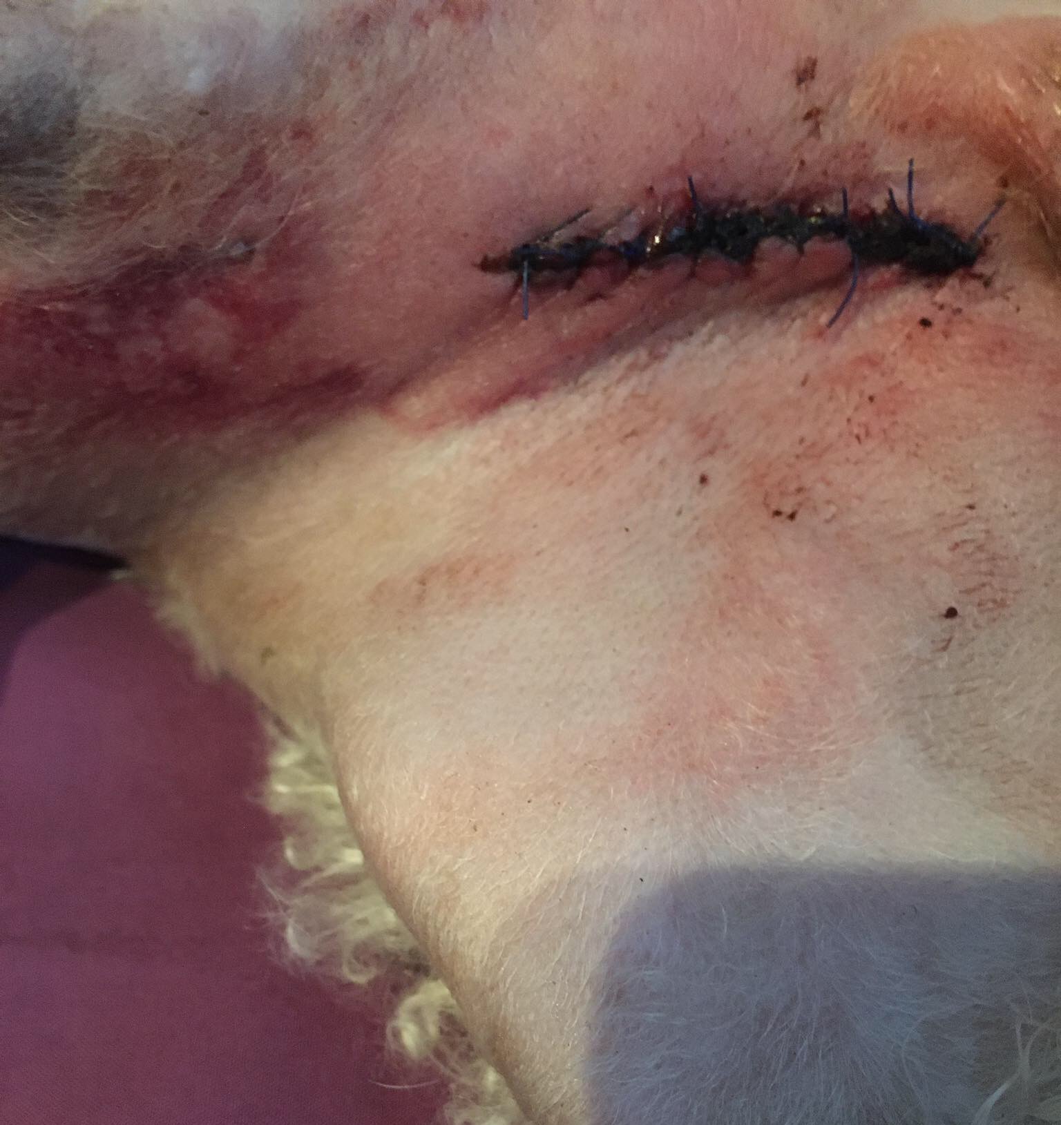 Dobrý den, v pátek jsme byli na kastraci, pejskem měl jedno nesestouplé varle v tříslech. V sobotu mu to začalo mírně otékat a vytvořily se mu tam hematomy, po návštěvě veteriny, má jinak vše v pořádku, dělalo se i sono a ránu má čistou. Dnes jsem si, ale všimla, že na jednom místě mu trošku tekla nažloutlá voda, nebo spíš to tam měl od toho mokré. Jizvu udržujeme čistou a ani on si do toho nijak nezasahuje, mívá límec, spíš ho asi bolí ty hematomy, které mažeme hemagelem. Proto bývá hodně neklidný. Je možné přes stehy to jemně přetřít desinfekcí Betadinou? On to má právě přes ty stehy hodně nateklé viz. obrázek. Měl to tam jenom jednou, teď to má hodinu čisté. Moc děkuji za odpověď.