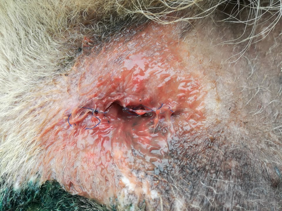 Dobrý den, 21.6. jsem nahmatala svému nekastrovanému psovi (NO,7 let) velké masy v tříslech a oteklá varlata. Ihned jsme jeli na veterinu - klinicky zdravý pes. Suspektně se domnívali, že masa v tříslech jsou mízní uzliny. Nasadili nám 2x po sobě injekčně Shotapen a následne Doxyhexal (2-0-2), na sonu byla vidět volná tekutina okolo varlat a i v tříslech. Antibiotika jsme brali měsíc, otok varlat i tříselná masa se změnšila cca o 1/3 až 1/2, na 24.7 byla domluvena kastrace. Psa vykastrovali a v tříslech udělali marsupializaci pravé uzliny - byl v ní hnis a vločky (vzorek zaslali na histologii a prý se jednalo o ložiskovou nekrozu, absces, žádné bakterie). Šourek mu po operaci otékal (horký ale nebyl) a rána v třílech byla stále nateklá a vytékala z ní krev a hnis, 2-3x denně jsem ji vyplachovala ředěnou betadinou. Každé 3 dny jsme chodili na kontrolu a jeden z doktorů (chirurg) nám říkal, že ta marsupializace tak má být, že se to hojí (nadále vytékal hnis), více ho zajímala kastrační rána, kterou si pes bohužel olízal a byla lehce oteklá,ale neporušená. Dnes 27.7 jsme měli jít na vytáhnutí stehů kdy nám ale jiný doktor řekl, že bude možná nutná druhá operace - amputace šourku a vyjmutí dané uzliny (pokud to tedy je uzlina). Ještě nám zkusili do pondělí změnit antibiotika na Dalacin C a pokud se to prý nezmenší bude nejspíš nutná další operace. Chtěla bych se zeptat zda nebylo lepší amputovat šourek popř. odebrat danou uzlinu hned při kastraci? Zvášť když zde byl otok již dlouho před operací. Popřípadě jak dál postupovat. Od změny antibiotik mu začala marsupializovaná rána zapáchat, vytéká z ní krev s hnisem viz foto. Chtěla bych znát názor více lékařů. Předem děkuji za odpověď.