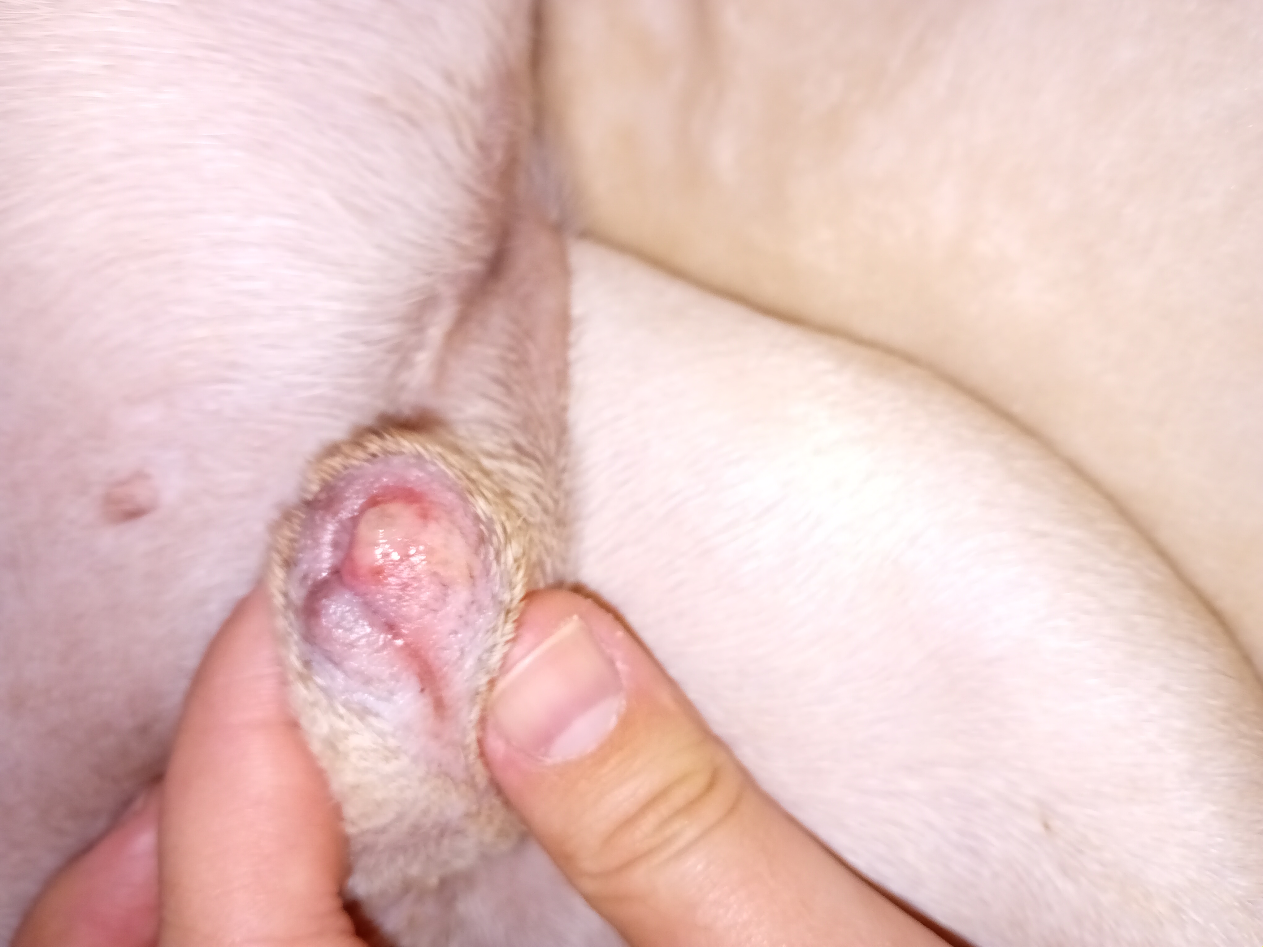 Dobrý večer, Včera v noci se pes vzbudil s tím, že ho něco trápí a zjistil jsem, že má něco na genitáliích. Bohužel veterinární klinika má otevřeno až v pondělí a psa to dost trápí. Zkoušel jsem mu to očistit i namazat, ale nevím co s tím. Můžete mi prosím říct co by to mohlo být? Předem děkuji za odpověď.