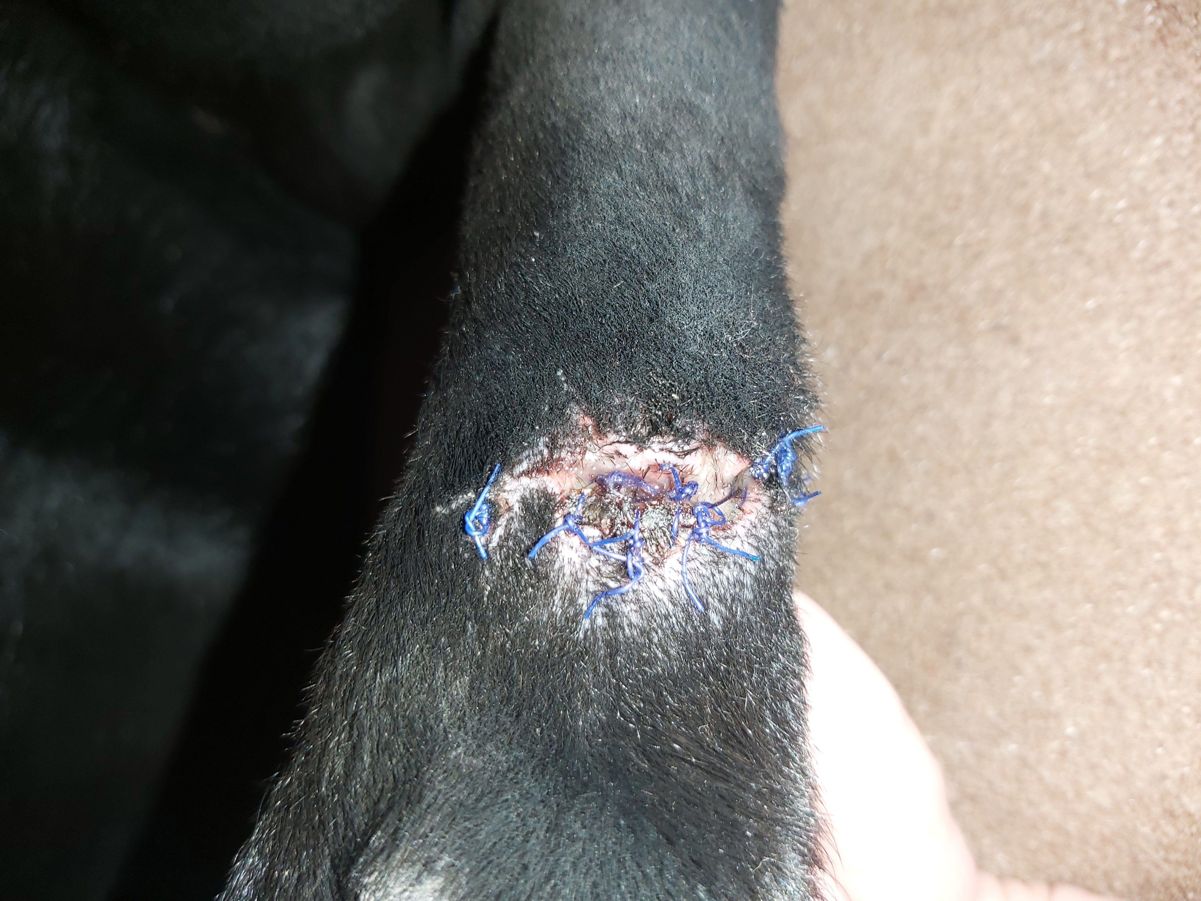 Dobrý den. V pondělí zajděte na vytažení stehů a počítejte s tím, že se rána bude dohojovat ještě několik týdnů s ochr.límcem a s ATB. S pozdravem MVDr Jančík.