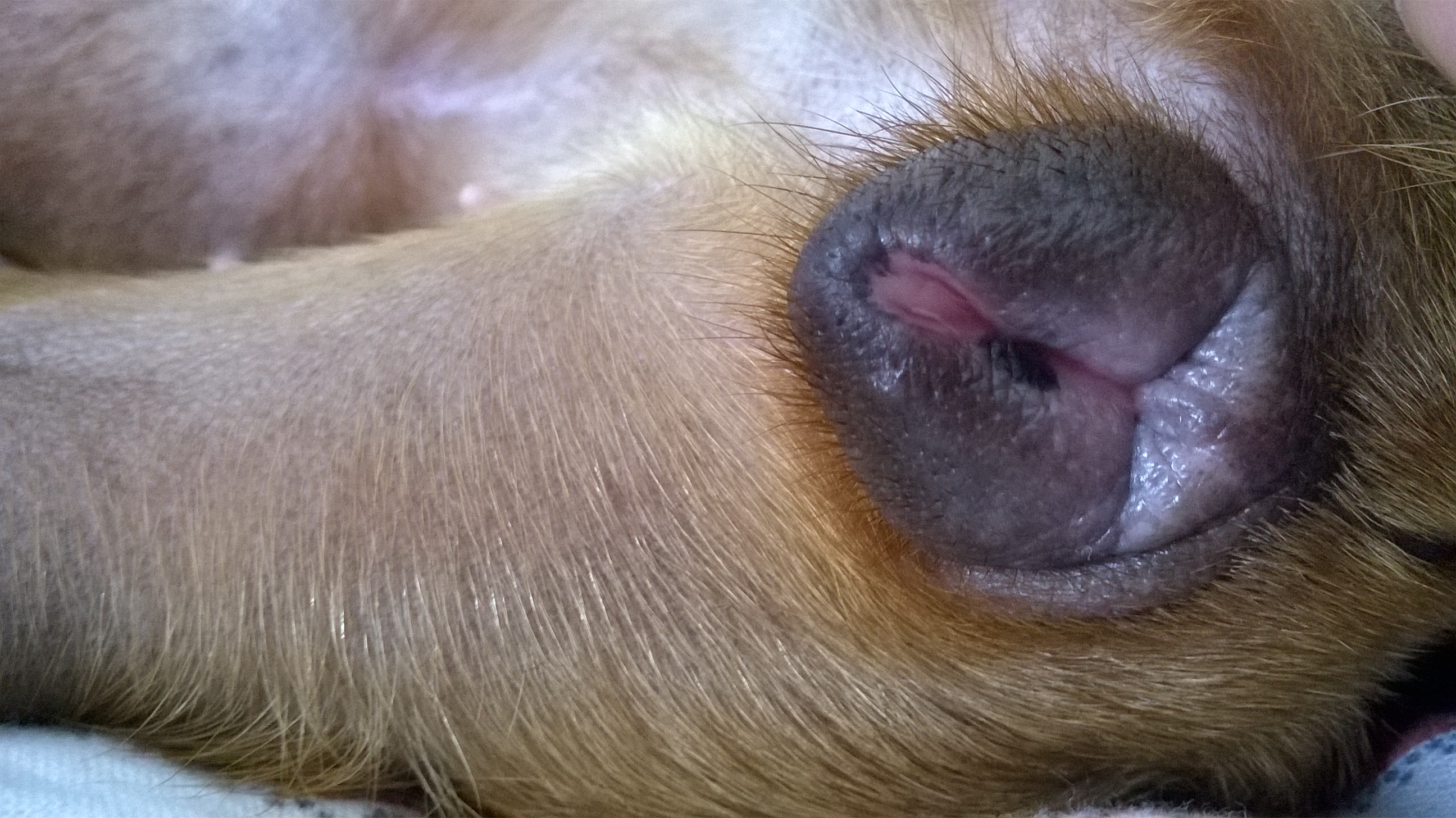 Dobrý den, zdá se, že jde o pigmentaci kůže - může k ní dojít v místě zvýšeného dráždění. Pokud by se útvar nějak měnil, zvětšoval nebo si místo fena začala olizovat bylo by lepší zajít na vyšetření k Vašemu veterináři. S pozdravem Tým veterinární kliniky MyVet