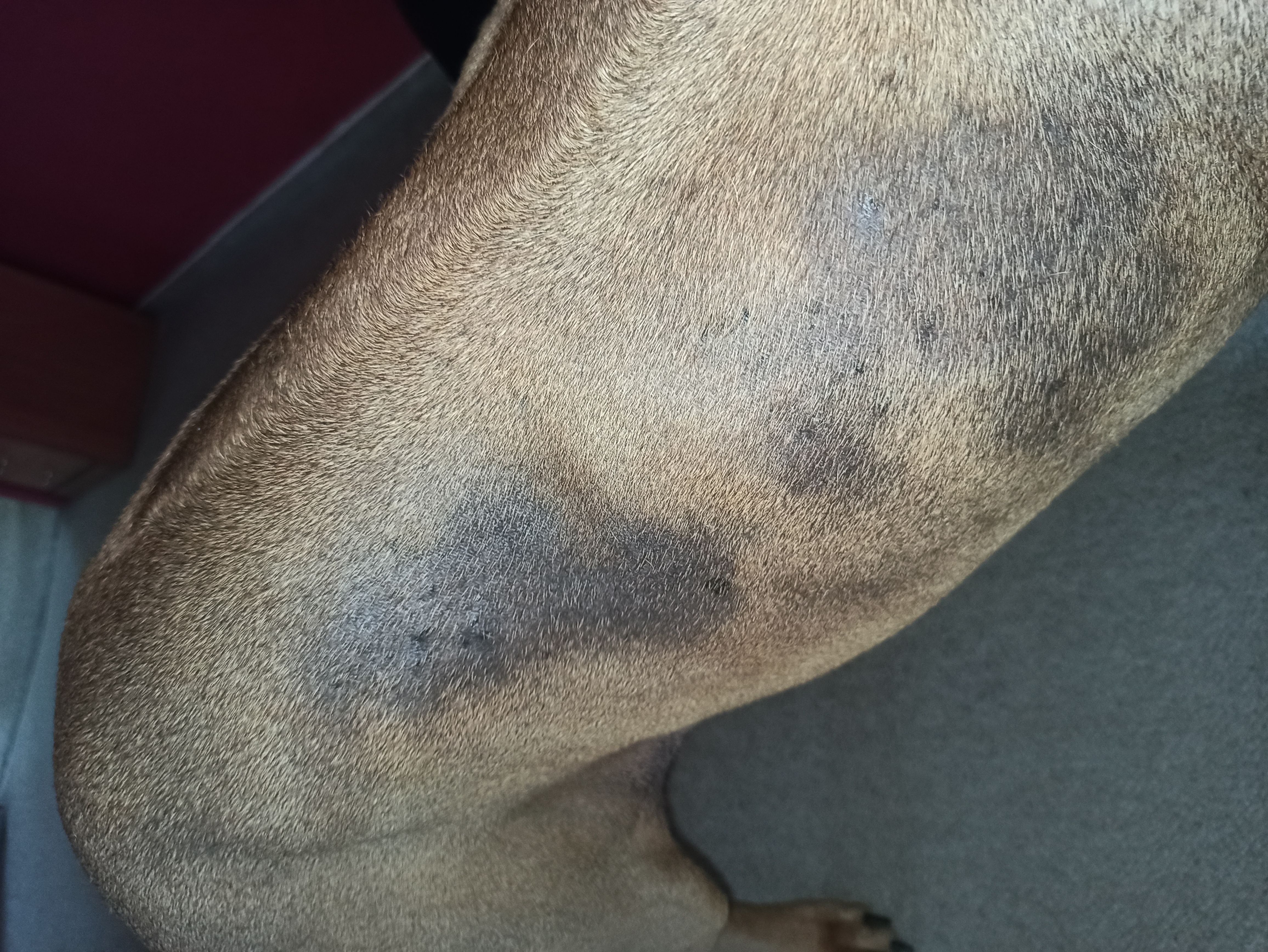 Dobrý den, máme rhodeskeho ridgebacka a na jedné straně těla mu trošku vypadla srst a udelaly strupy, nevypadá to hezky. K veterináři se chystáme, a bohužel je to možné až další týden. Pes se neškrábe. Žije s náma v domácnosti nespi venku. Posílám fotku a děkuji předem za odpověď co by to asi mohlo být. Trvá to pár dní.
