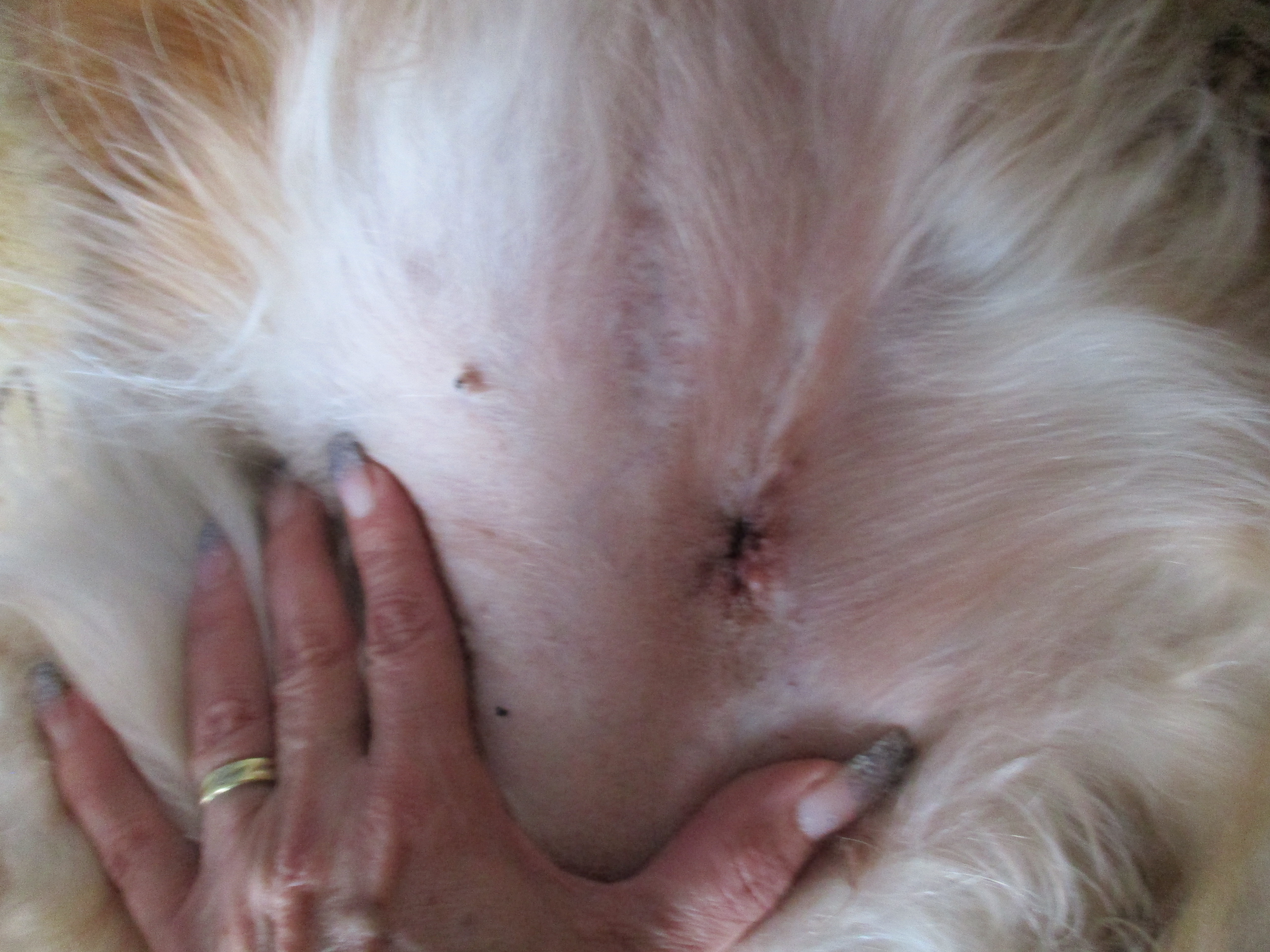 Dobrý den, Rok od operace by měla být už jizva dávno klidná a bez problémů, proto bychom doporučili návštěvu veterináře. Chápeme, že se můžete obávat narkózy, ale některé mechanické problémy nejsou řešit zase jinak než mechanicky. Hezký den