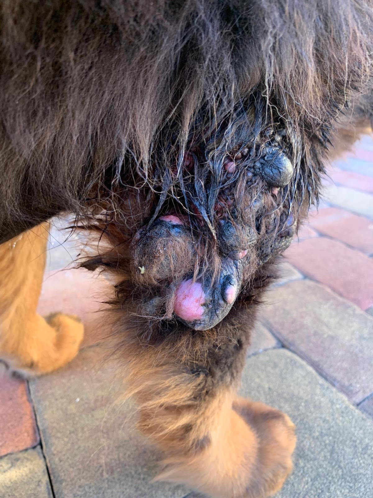 Dobrý den, chtěla bych se prosím zeptat. Rodiče mají doma tibetskou dogu, v lednu bude mít už 12 let, váží cca 65 kg. Už delší dobu má na noze výrůstek, který se teď výrazně zvětšil a teď si jej začala hodně lízat, přikládám fotografii. Vzhledem k její váze jí bohužel nedostaneme k veterináři, proto přikládám foto zde. Bylo by možné tohle ještě nějak řešit - výřez nebo něco? Pomohlo by tu ránu alespoň desinfikovat či něčím mazat? Předem moc děkuji.