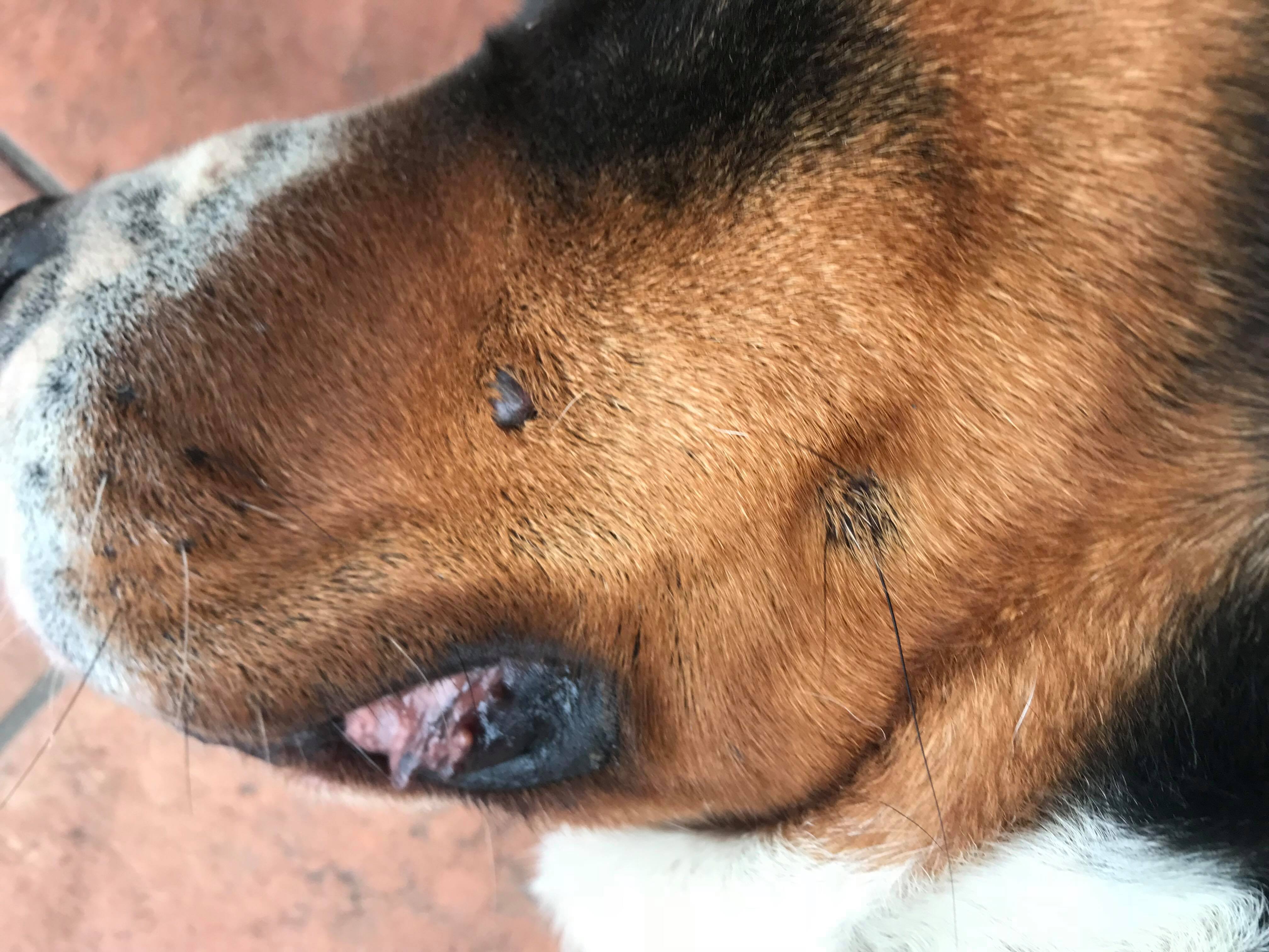 Dobrý den. Chtěla jsem se zeptat ohledně útvaru, který má naše fenka na tváříi. Dříve to vypadalo jako klíště, avšak to to není. Má to na tváři už pár let a nebyl s tím žádný problém, nyní se to asi poslední čtvrt rok začalo zvětšovat. Dá se to posoudit i takto přes fotografii? Zda je to v pořádku, nezhoubné, či s tím máme někam zajet a řešit to? Fenka narozena 6/2009 a je to Velký Švýcarský Salašnický pes. Děkuji