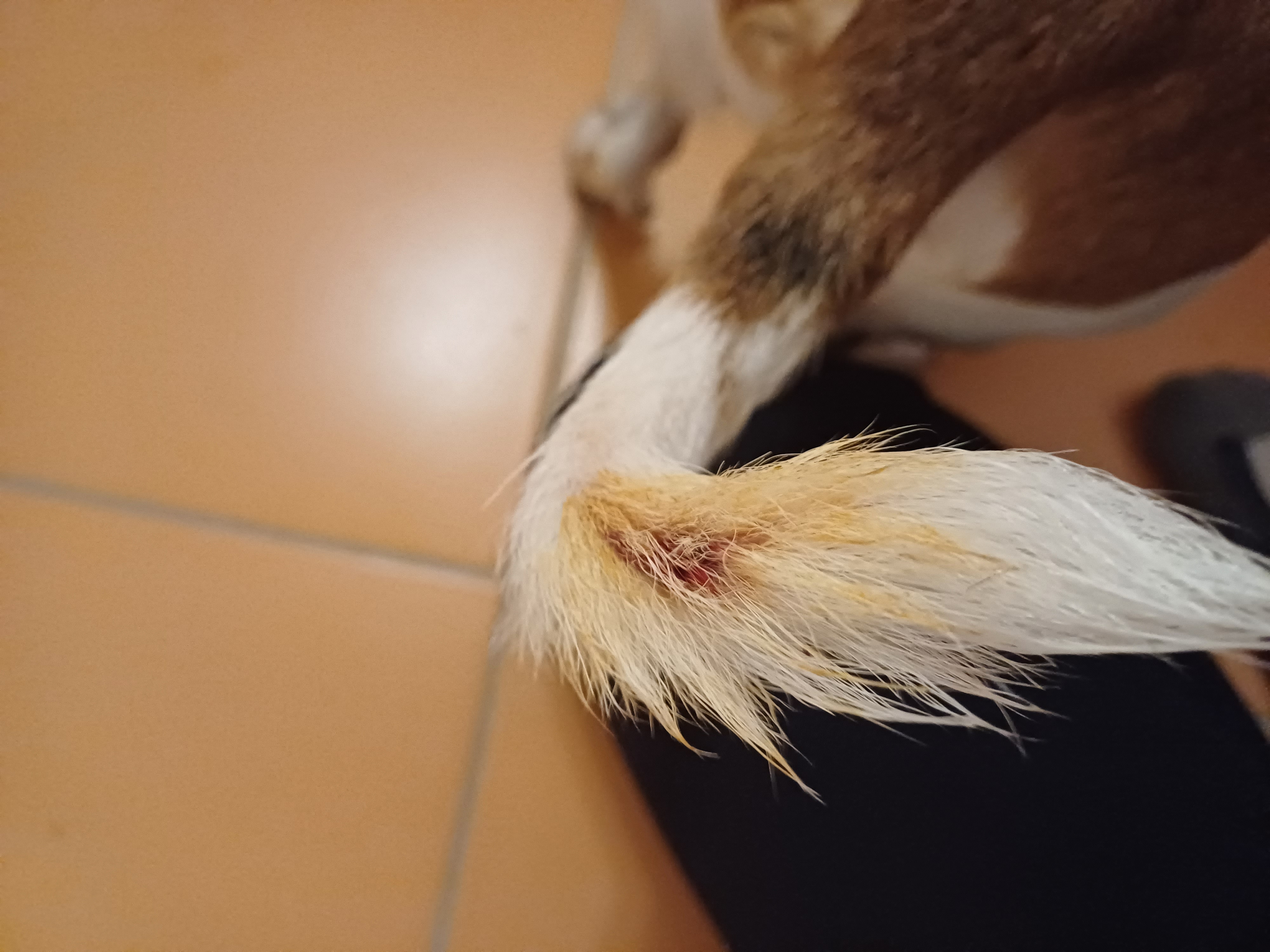 Dobrý den, vypadá to na zánět kůže, poranění atd. Každopádně doporučuji navštívit veterináře, který ocas odborně a pořádně ošetří, je možné, že to bude chtít léčbu antibiotiky. Hezký den.