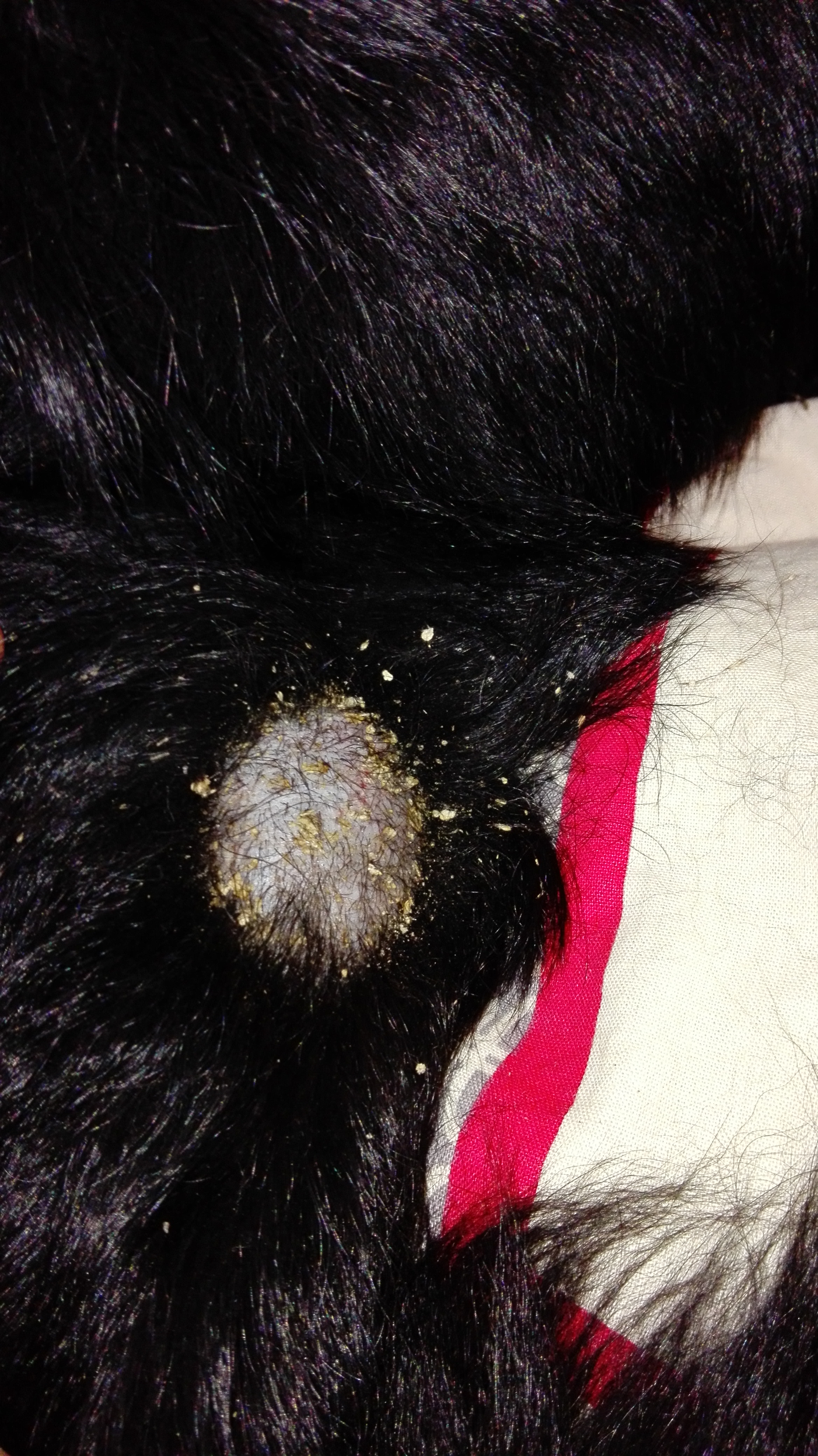 Dobrý den, může se jednat o zánět ocasní žlázy. Vzniká u psů se sklonem ke zvýšené tvorbě kožního mazu. Používá se lokální léčba antiseboroickýmy šampony. Doporučuji navštívit Vašeho veterinárního lékaře.