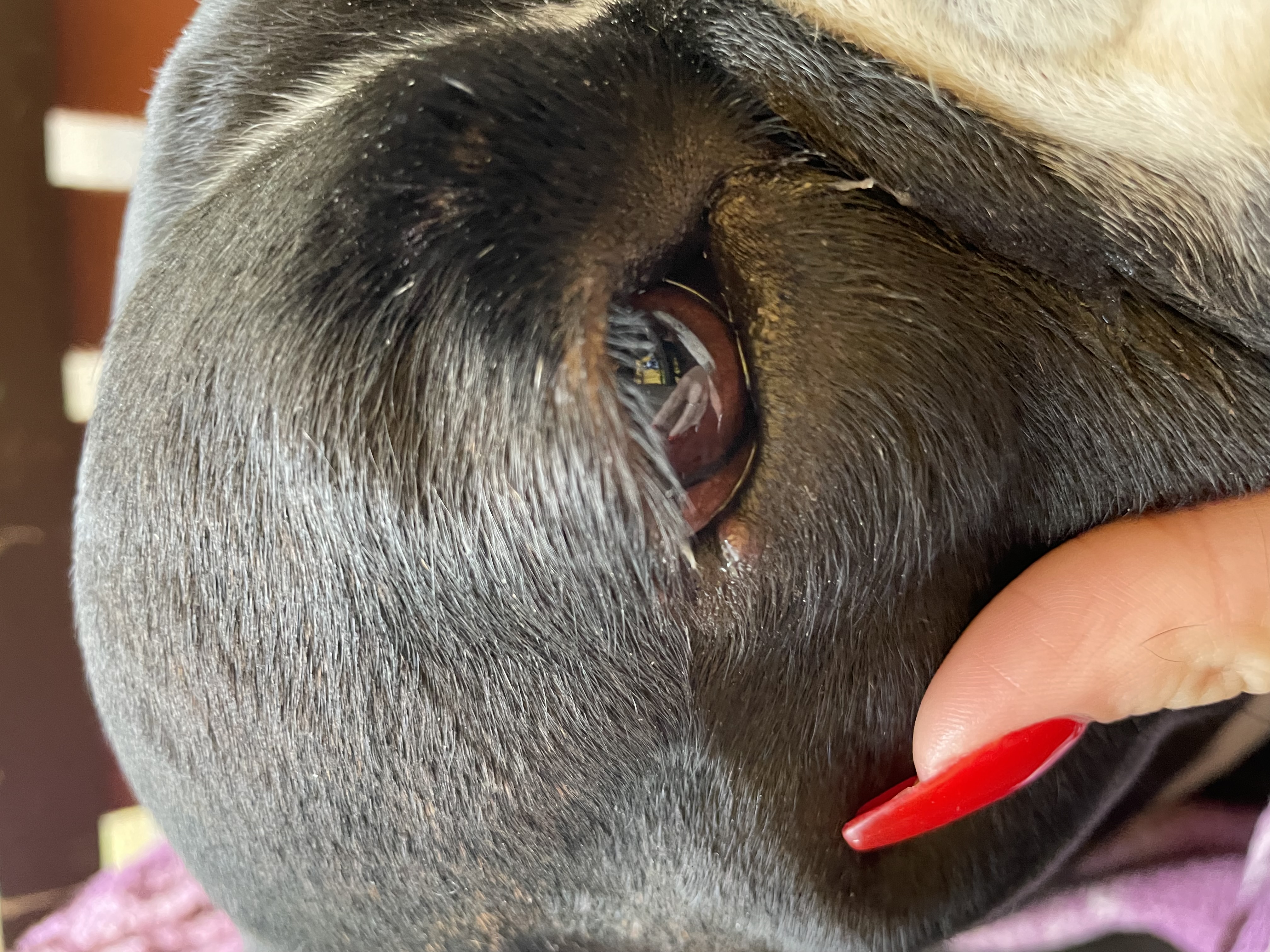 Dobrý den, máme čtyři roky starého německého boxera. Asi 2 dny zpátky se mu na spodním očním víčku udělala z ničeho nic malá boulička. Chtěla bych se zeptat jestli z té fotky poznáte co by to tak mohlo být..jestli je to pouze pupínek nebo něco vážnějšího. Předem děkuji za odpověď.