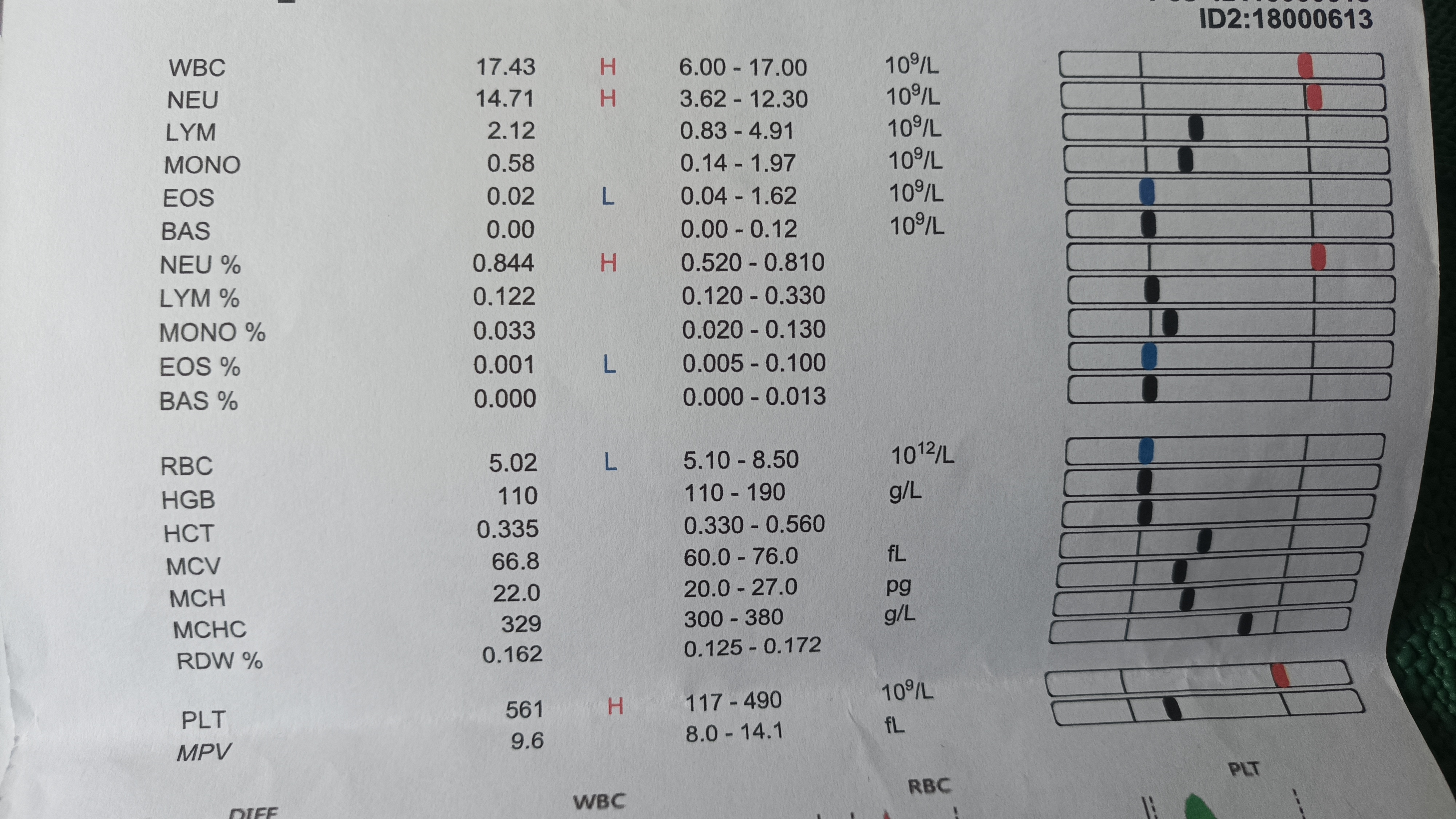 Dobrý den. V hematolog.rozboru je mírně zvýšený počet bílých krvinek, především neutrofilu a mírně snížený počet červených krvinek., mírně zvýšený počet krevních destiček.Muze se jednat o zanetlivy proces.S pozdravem MVDr Jančík.