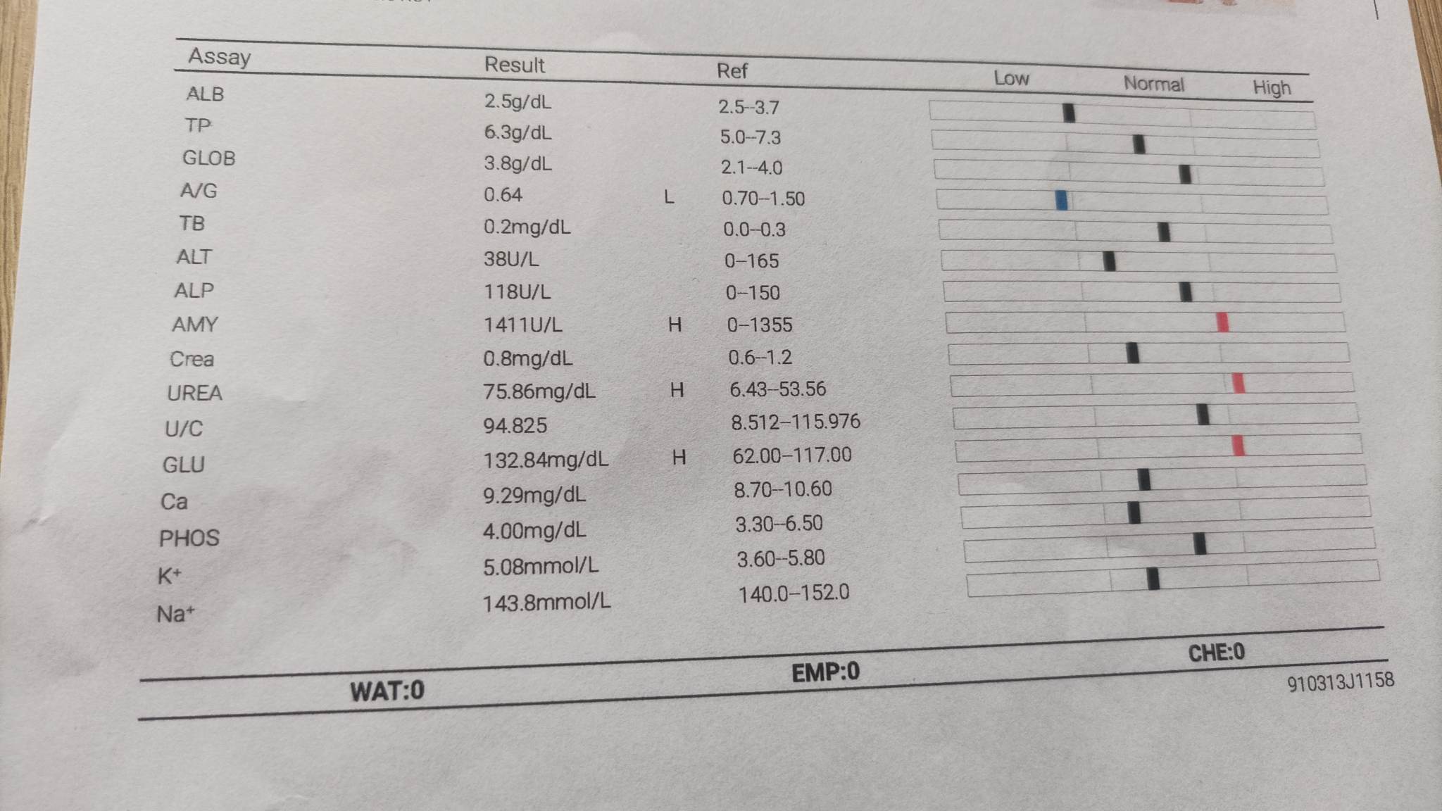 Dobrý den Mírně zvýšená hladina mocoviny,cukru a amylazy.O jaké zvíře se jedná a jaké má příznaky? S pozdravem MVDr Jančík.