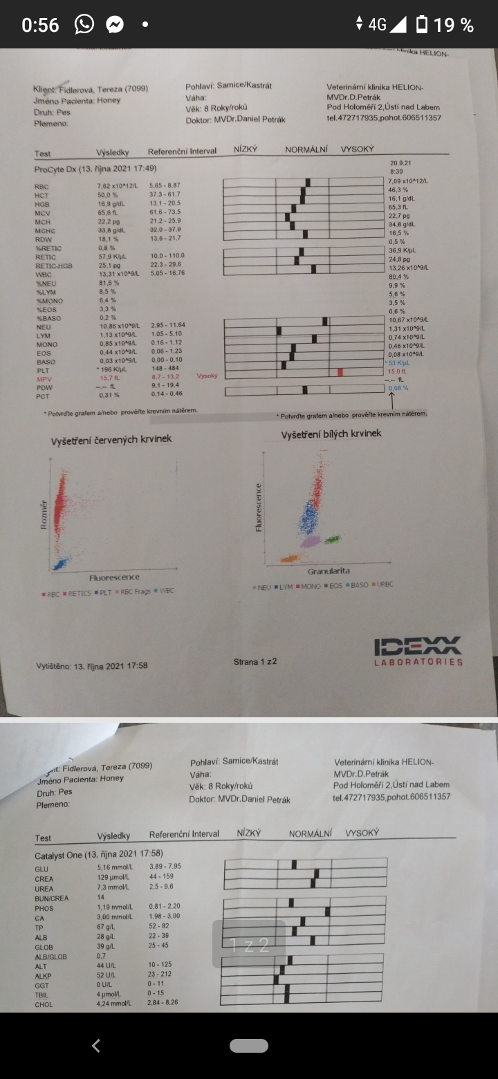 Dobrý den, bohužel jsme našeho psa (fena bernského salašnického psa) museli nechat utratit, kvůli rakovině. Náš veterinář nám ale říkal, že je to pouze zánět v oblasti průdušnice. Po dvou týdnech, kdy jsme chodili stále na kapačky, jsme zašli k jinému veterináři a ten nám tedy řekl, že je to rakovina. První veterinář dělal test krve, dalo by se to poznat z testu krve? Testy posílám v příloze. Předem moc děkuji za odpověď, Tereza Fidlerová