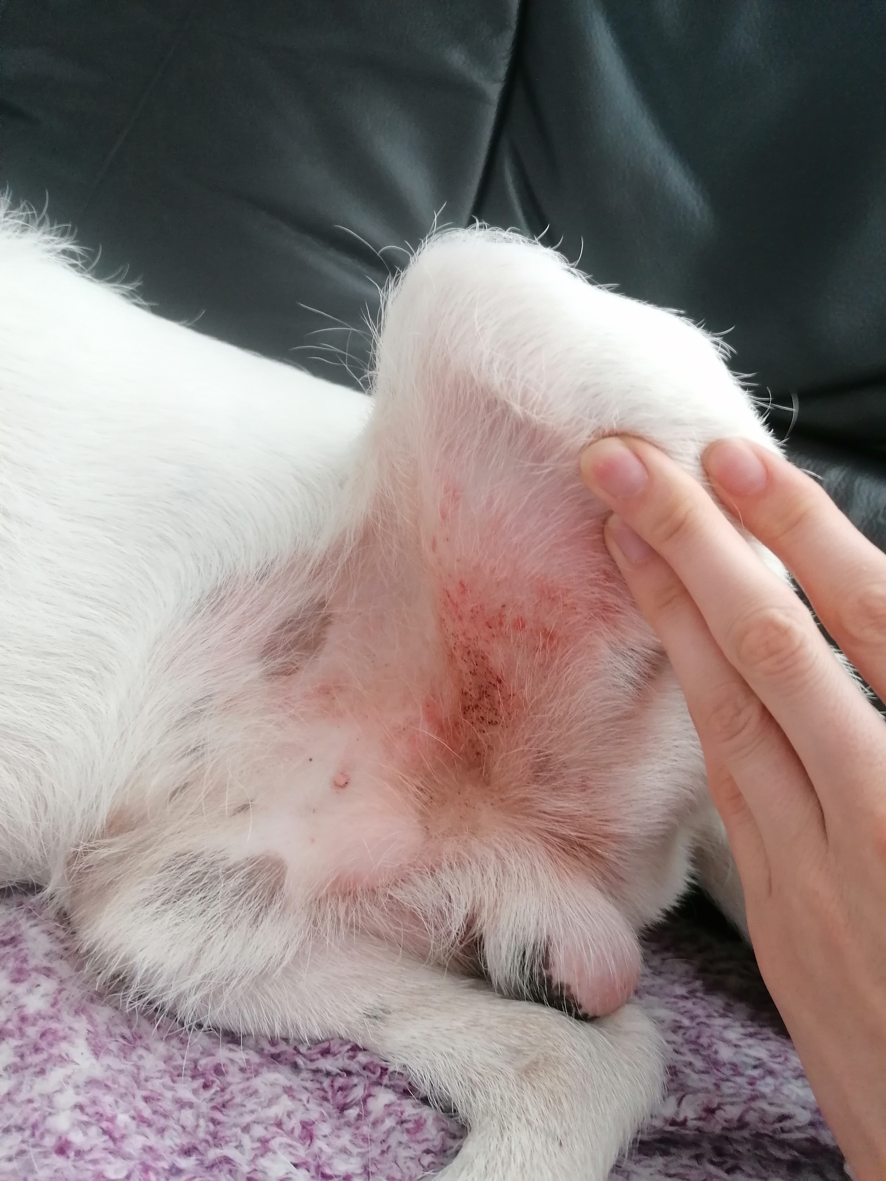 Dobrý den. Může to být kvasink.infekce vycházející z předložky penisu. Je u toho hnisavy výtok z předložky.vaku.Zkuste koupele v chlor.hexidic.samponu a výplach předložky.vaku roztokem Betadiny s vodou 1;5.S pozdravem MVDr Jančík.