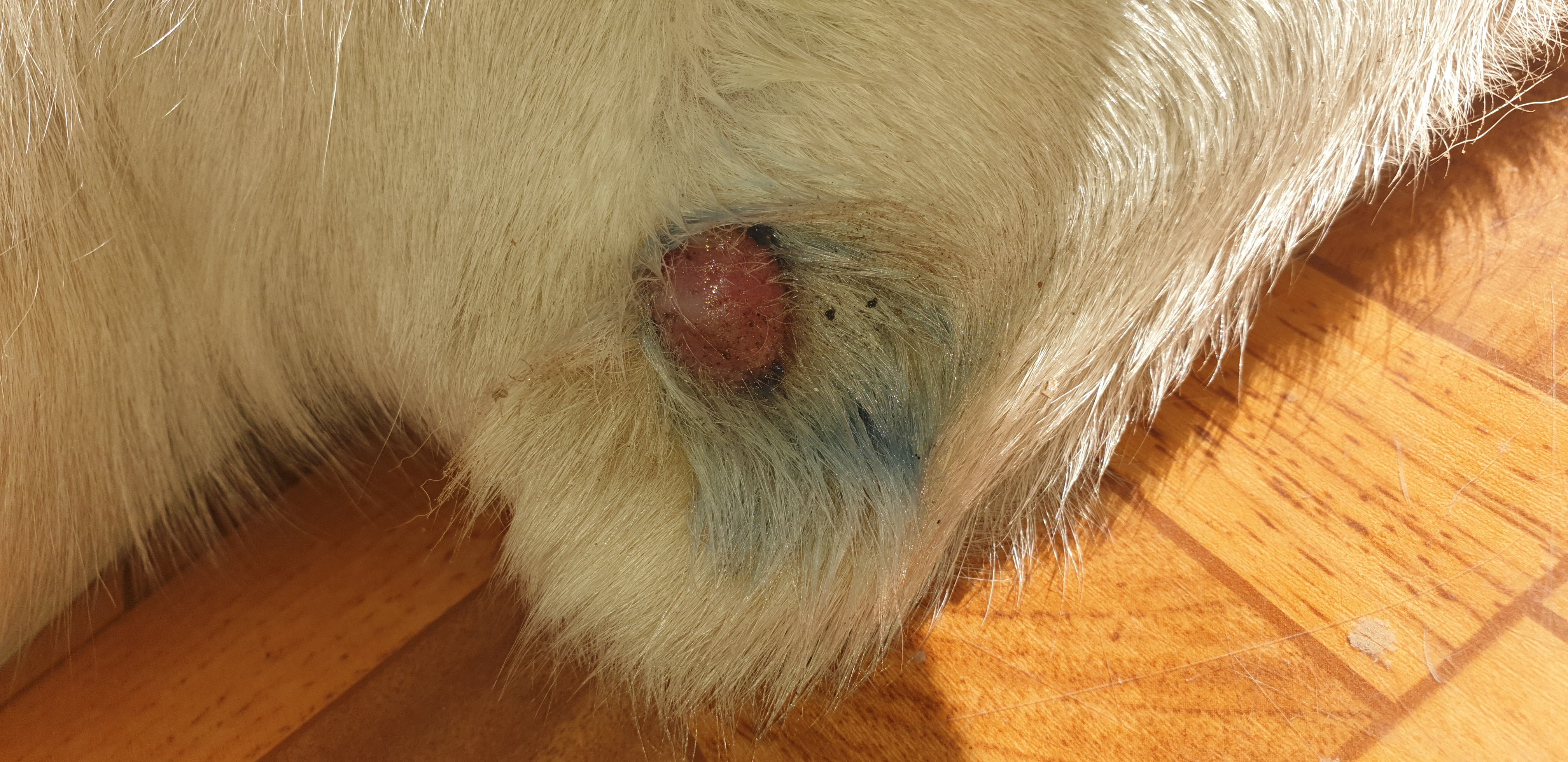 Dobrý den, náš pes už má delší dobu tenhle flek na noze, na dotek to má citlivé, škrábe si to a furt olizuje.. Z místa vypadaly chlupy a začalo trošičku hnísat. Zkusili jsme namazat heřmánkovou mastí a zatím nic.. Co dělat?