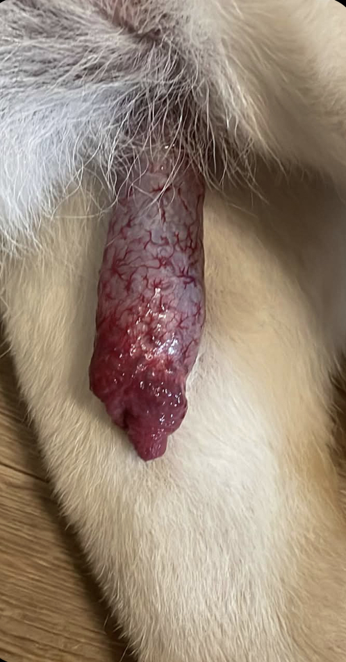 Dobrý den, prvně se moc omlouvám, že otravuji, ale něco se mi na mém pejskovi nezdá. Nechci s tím zatím jezdit na veterinu, jelikož tam nechci jít s každou banalitou. Ale zároveň se mi to nelíbí a chci se poradit, jestli s ním někam zajet a nebo jestli to je normální. Mám 10 ti leteho pejska, který je vykastrovaný. Poslední dobou, když má svou intimní chvilku tak mývá potom strašně zarudlý penis. Přikládám foto - nedokážu to popsat. Je toto normální? Někdy má okolo sebe trochu krve. Předem moc děkuji za odpověď.